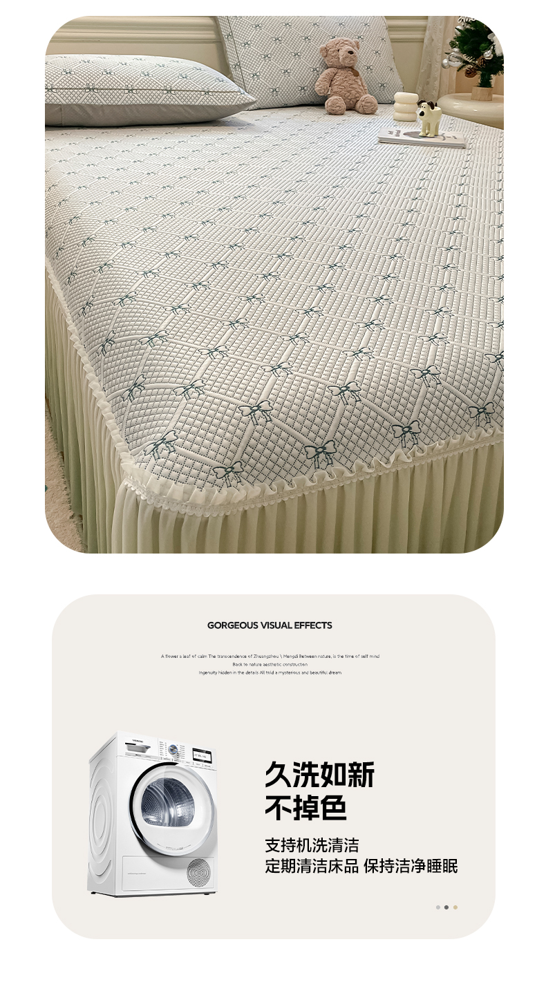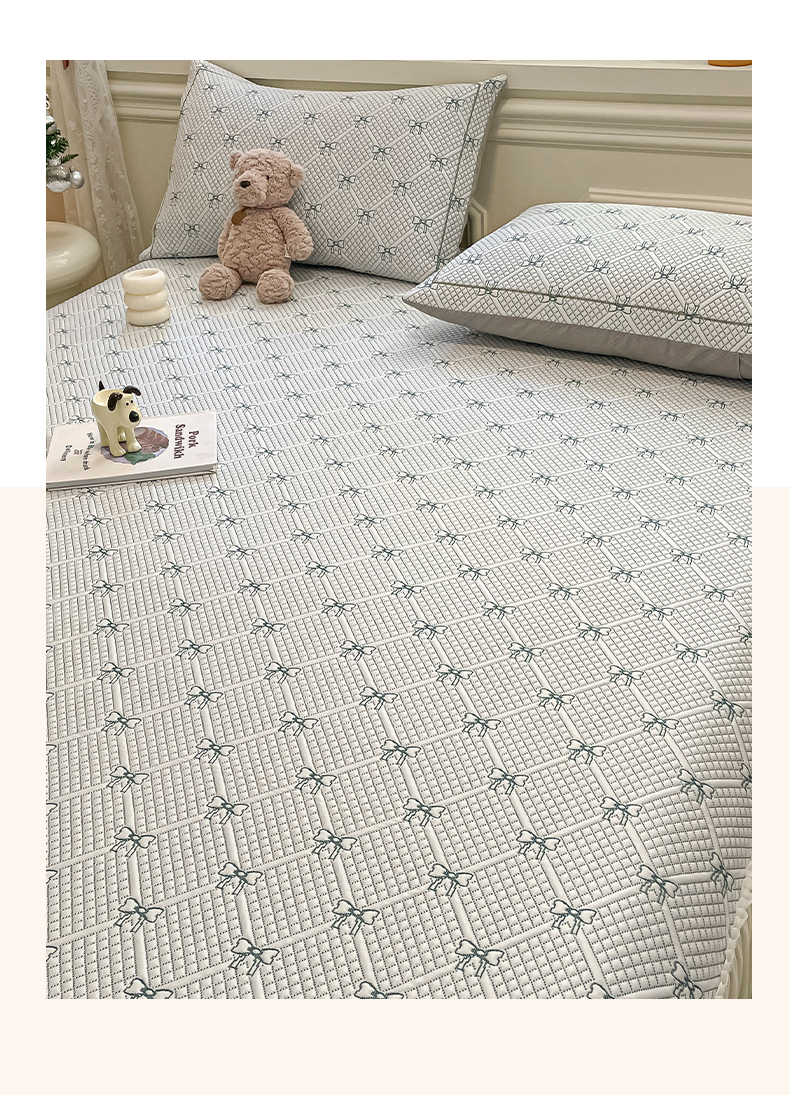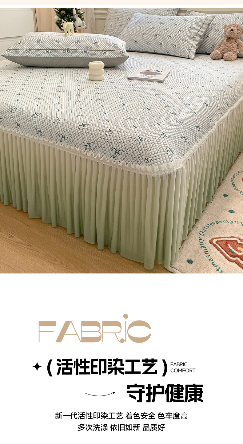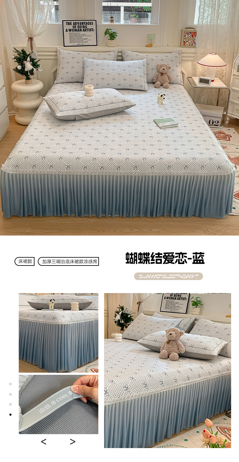 商品名称:雅居纺家纺 2026新款加厚三明治底床裙款凉感席凉席席子 蝴蝶结爱恋-绿