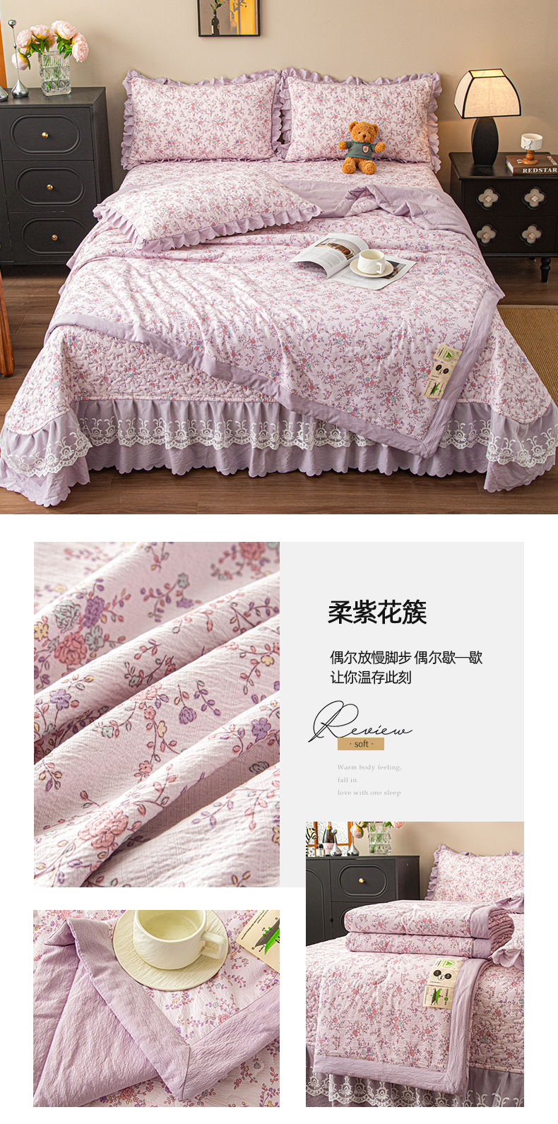 商品名称:美之润家纺 2026新款原麻夹棉床盖夏被四件套 柔紫花簇