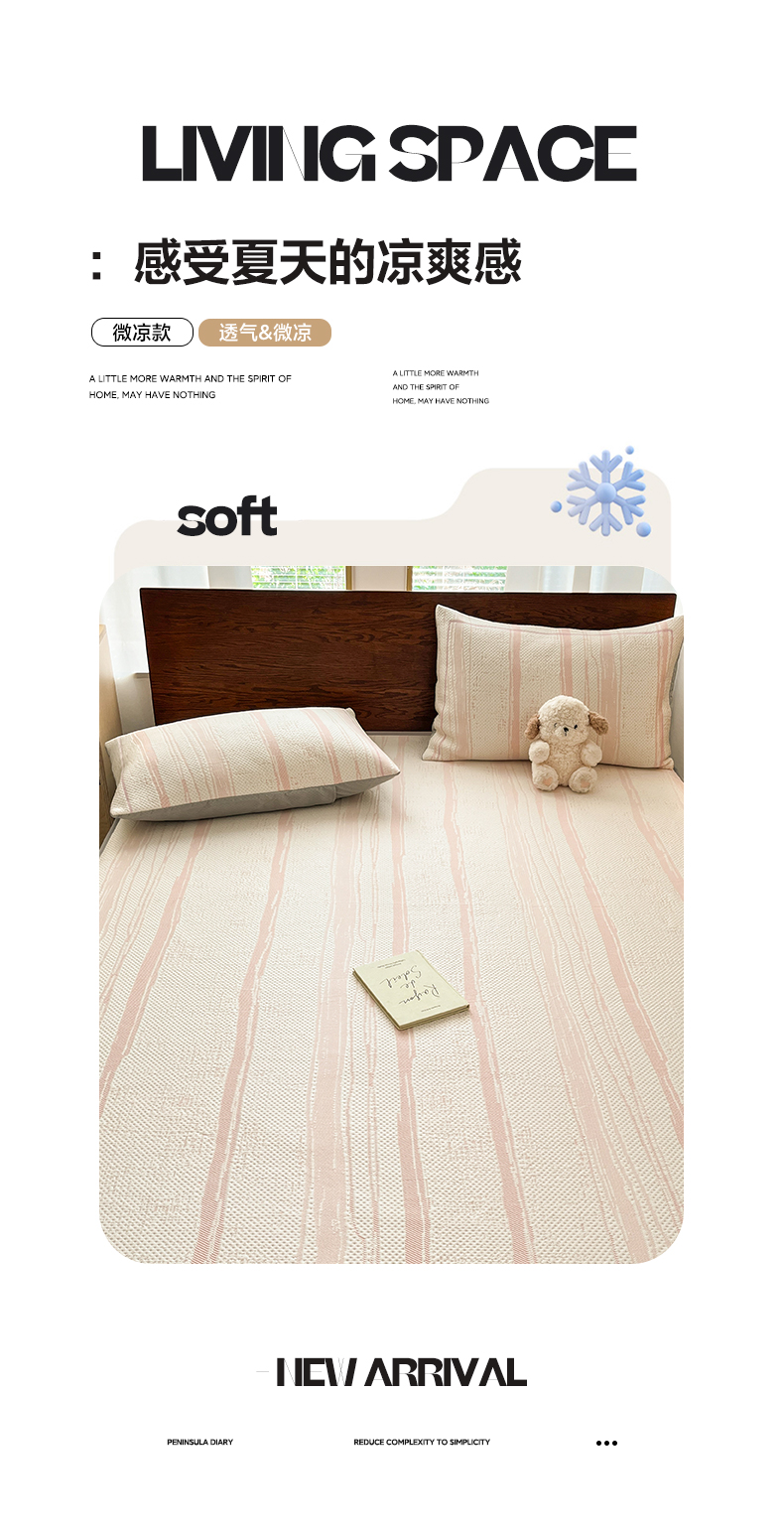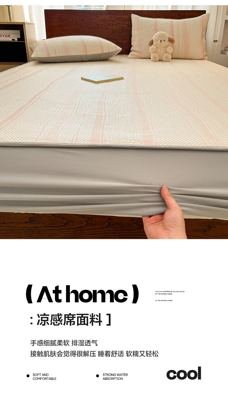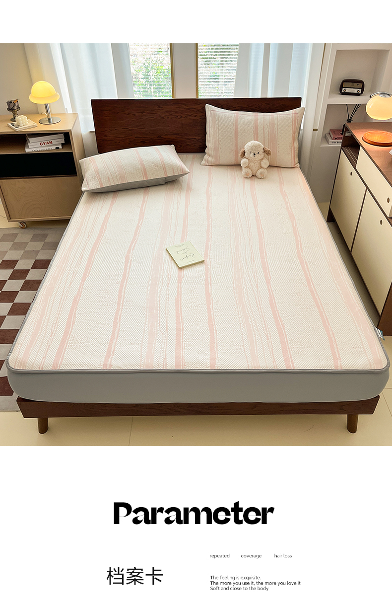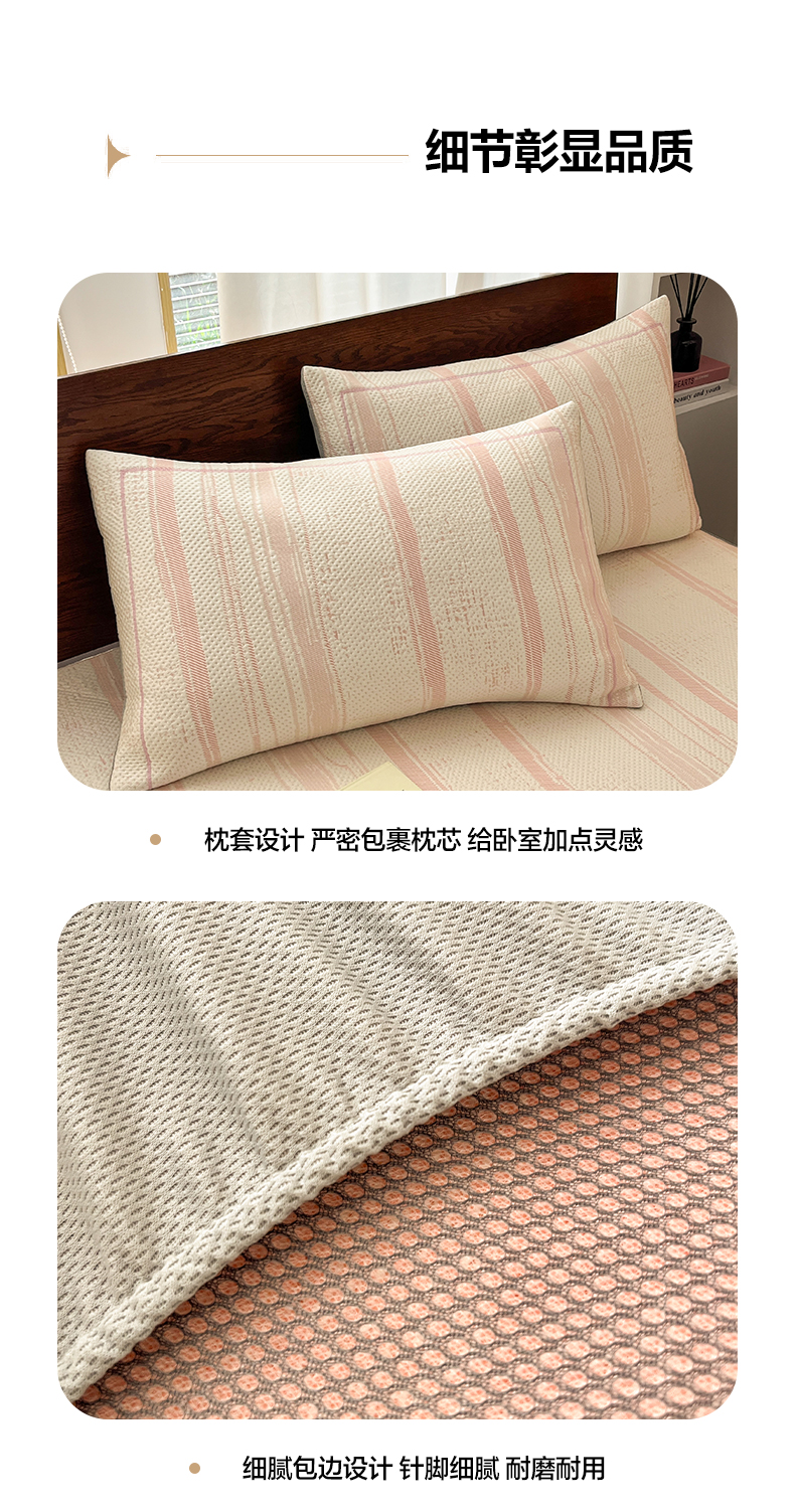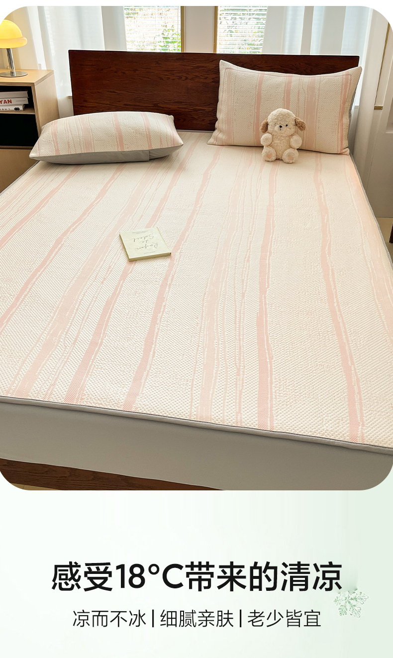 商品名称:雅居纺家纺 2026新款加厚三明治底凉感豆豆简约款凉感席床笠款凉席席子 条纹-粉