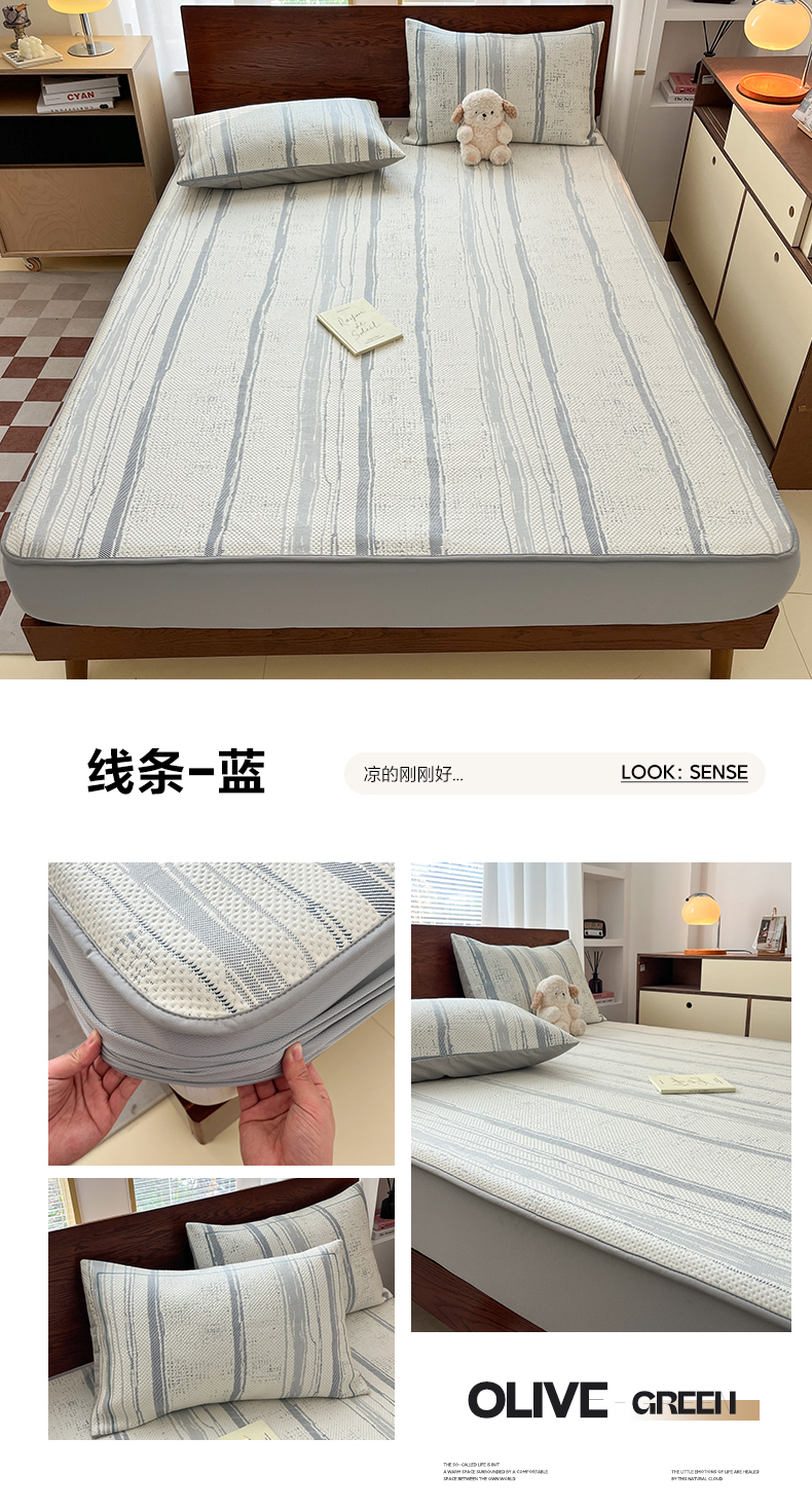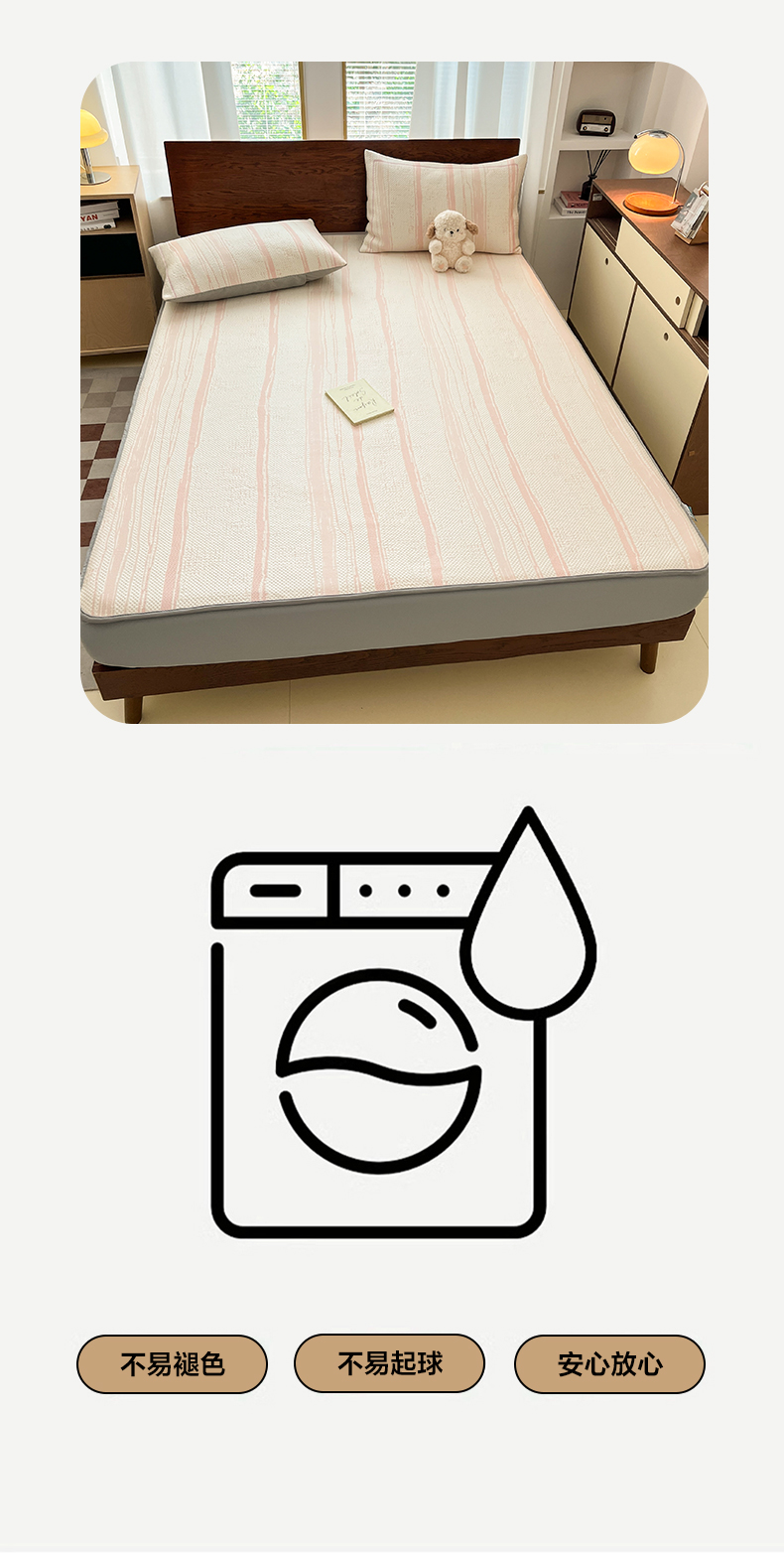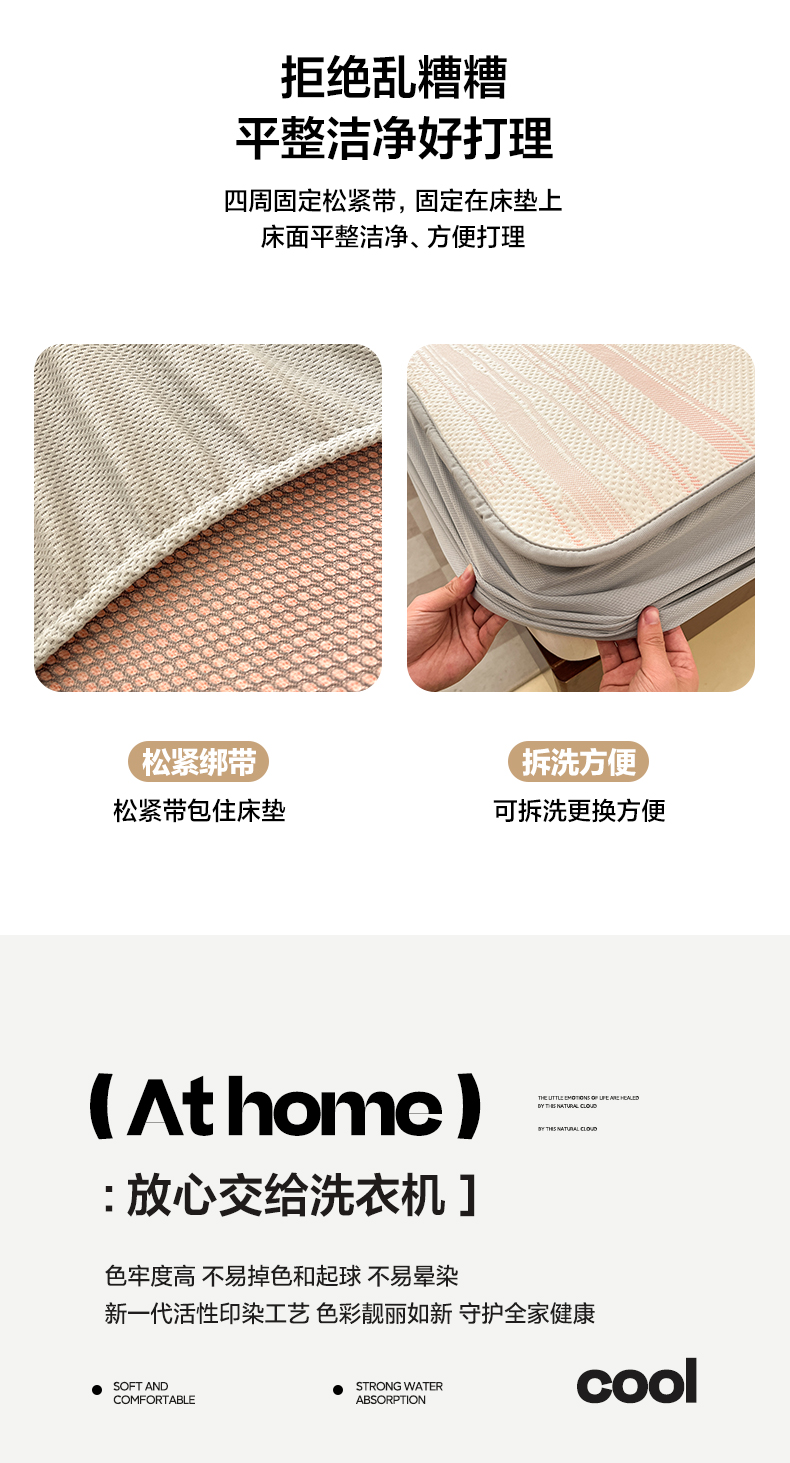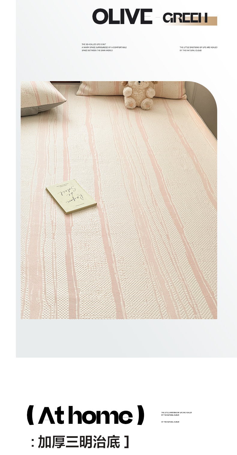 商品名称:雅居纺家纺 2026新款加厚三明治底凉感豆豆简约款凉感席床笠款凉席席子 条纹-粉