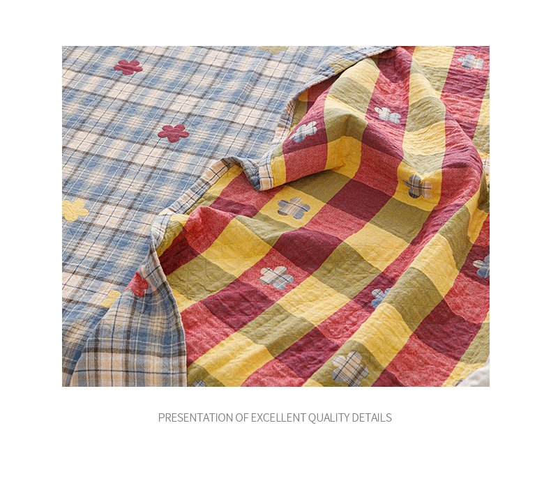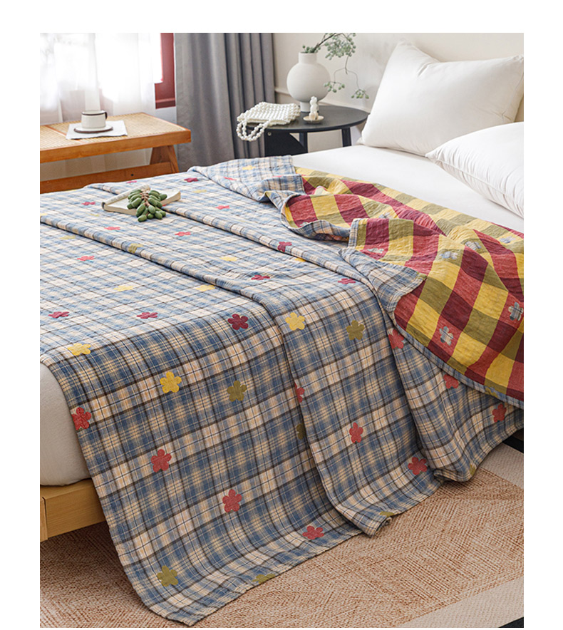 商品名称:悦然毛巾被 2026春夏新款全棉纯棉三层纱水洗毛巾被夏被夏凉被空调被 彩格小花蓝
