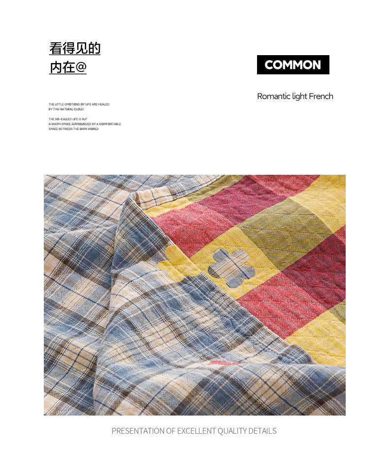 (总)悦然毛巾被 2026新款外贸全棉三层纱布毛巾被盖毯,爱心拼布灰,爱心拼布咖,爱心拼布蓝,空灵羽灰,空灵羽咖,空灵羽蓝,迷宫格咖,迷宫灰,迷宫蓝,组合