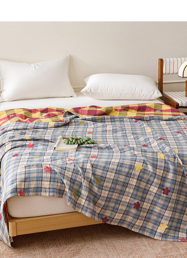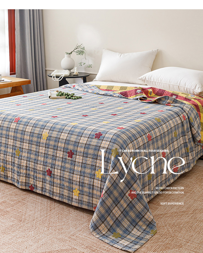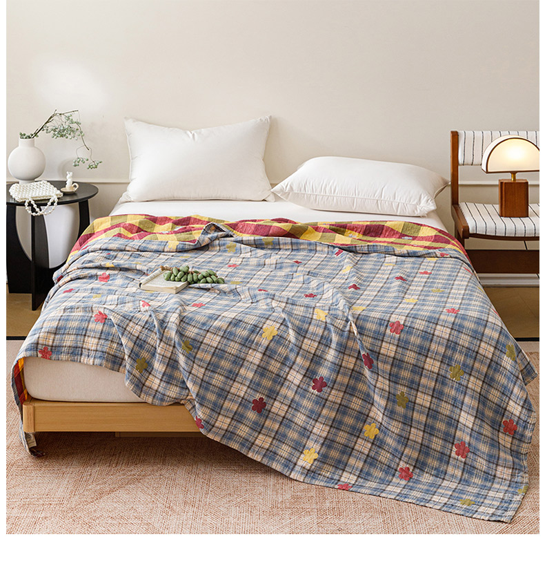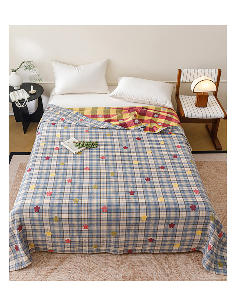 悦然毛巾被 2026春夏新款全棉纯棉三层纱水洗毛巾被夏被夏凉被空调被 彩格小花蓝