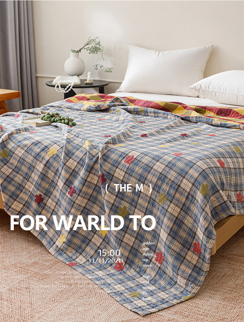 (总)悦然毛巾被 2026新款全棉纯棉三层水洗色织纱布毛巾被盖毯夏凉被空调被,繁花似锦,净色玫瑰,摩登,清格慢居灰,清格慢居蓝