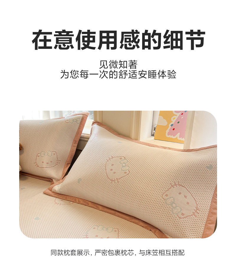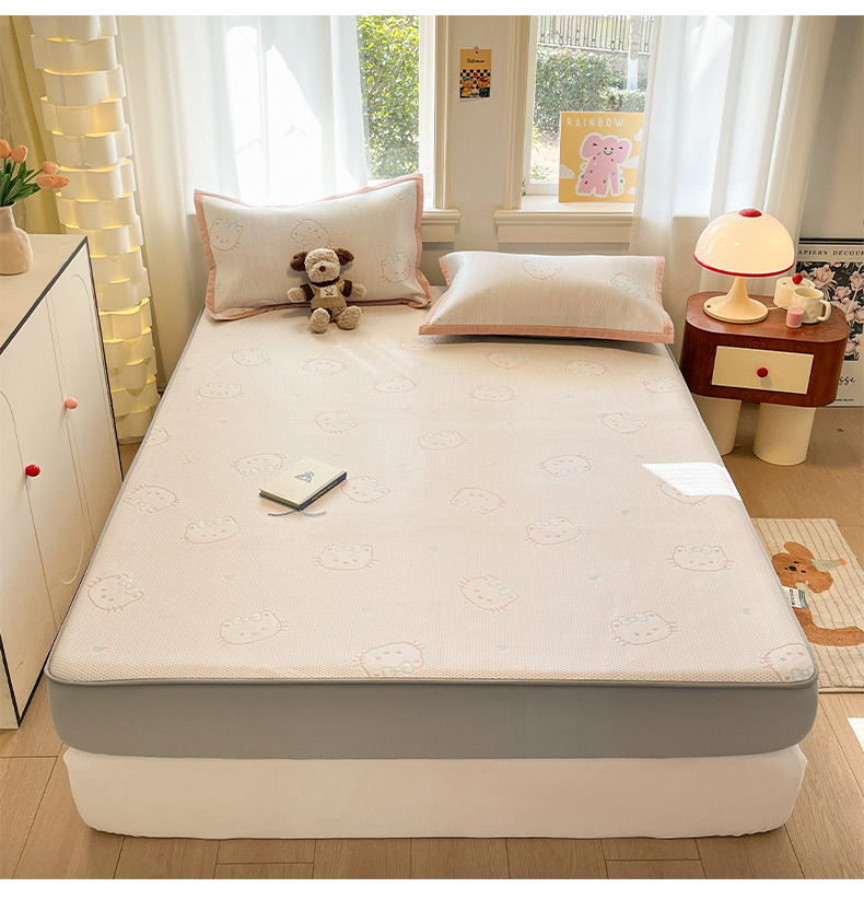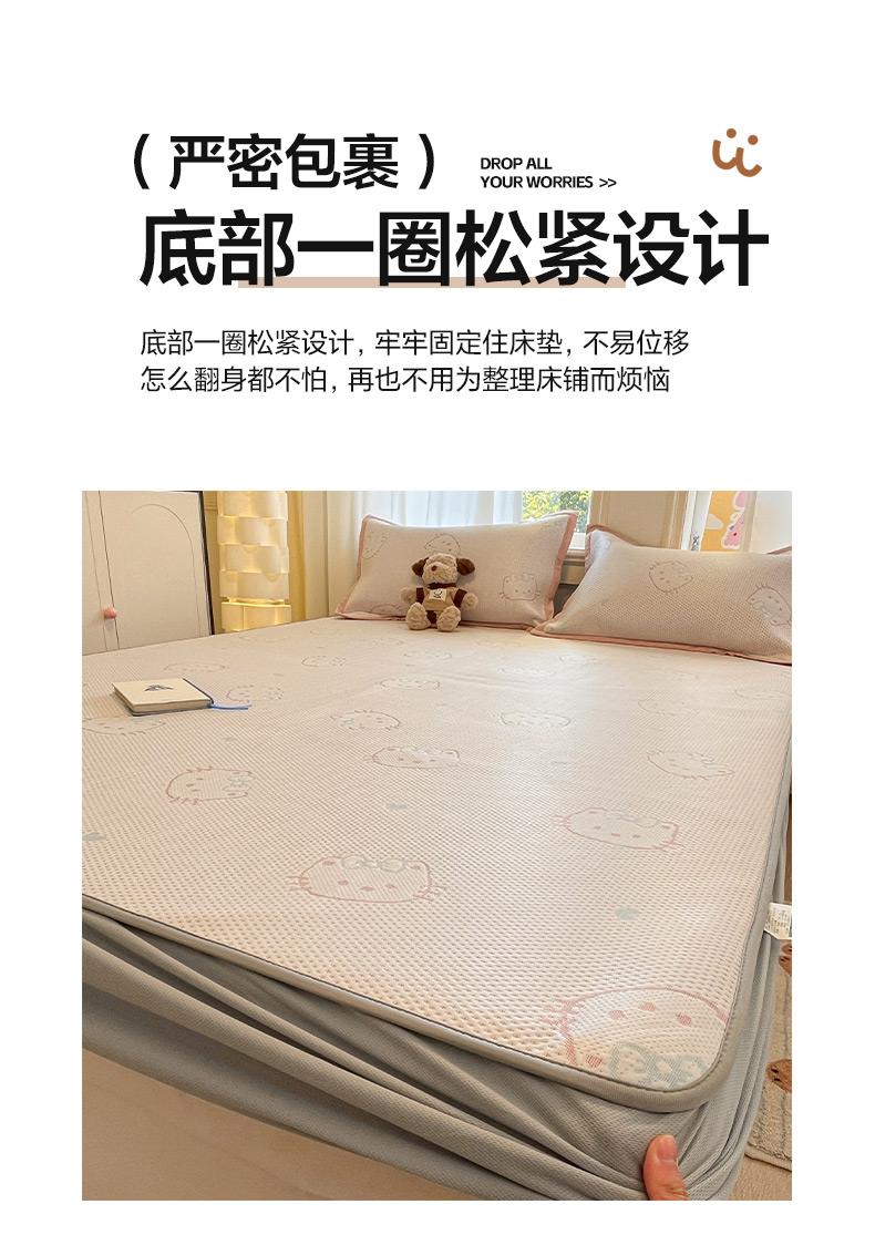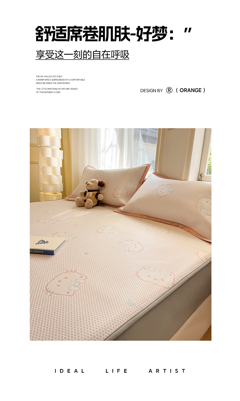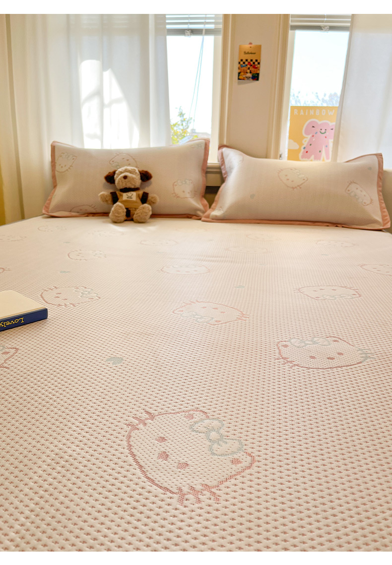 (总)雅居纺家纺 2026新款A类加厚三明治底提花小清新凉感席床笠款凉席席子,粉小兔,蝴蝶结猫咪,领结小猫,平安熊猫,山茶花,太空星球,晚安小狗,小熊熊,星星小熊,悠闲花园