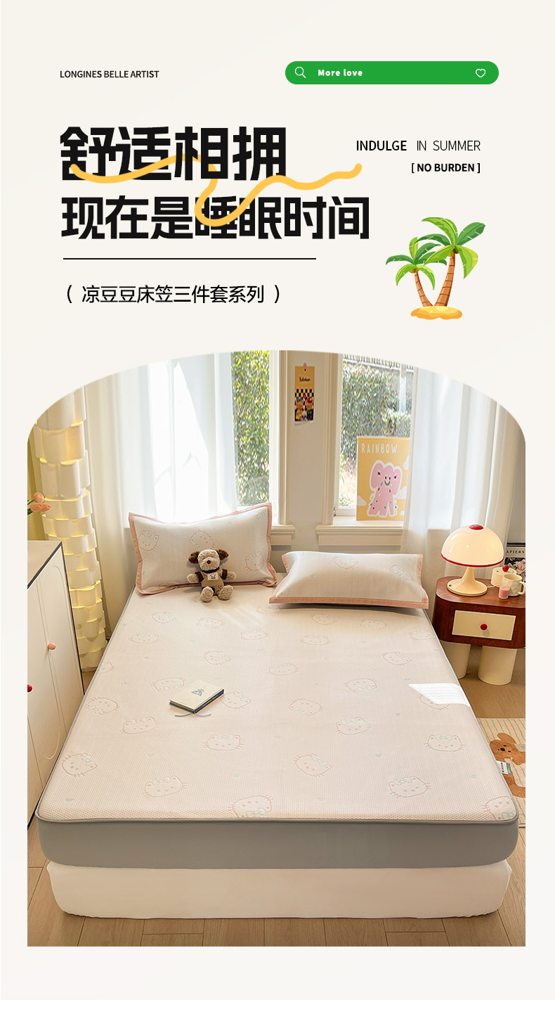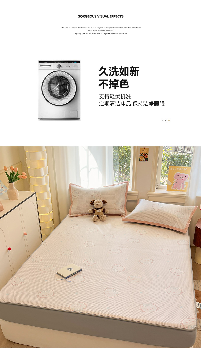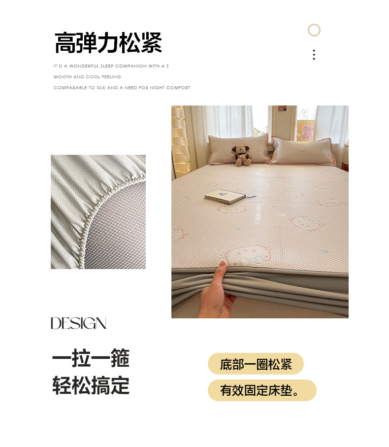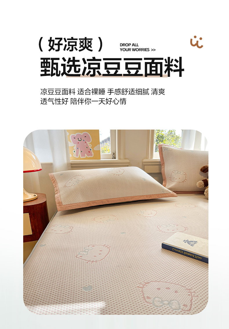 (总)雅居纺家纺 2026新款A类加厚三明治底提花小清新凉感席床笠款凉席席子,粉小兔,蝴蝶结猫咪,领结小猫,平安熊猫,山茶花,太空星球,晚安小狗,小熊熊,星星小熊,悠闲花园