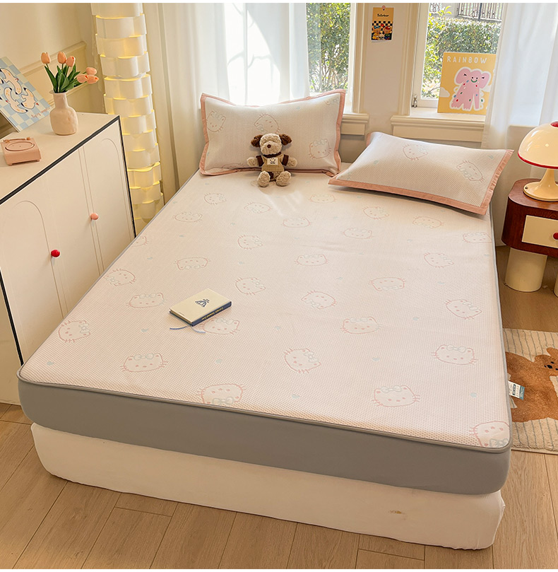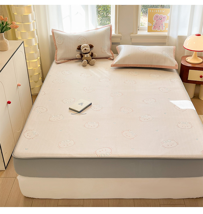 商品名称:雅居纺家纺 2026新款A类加厚三明治底提花小清新凉感席床笠款凉席席子 蝴蝶结猫咪