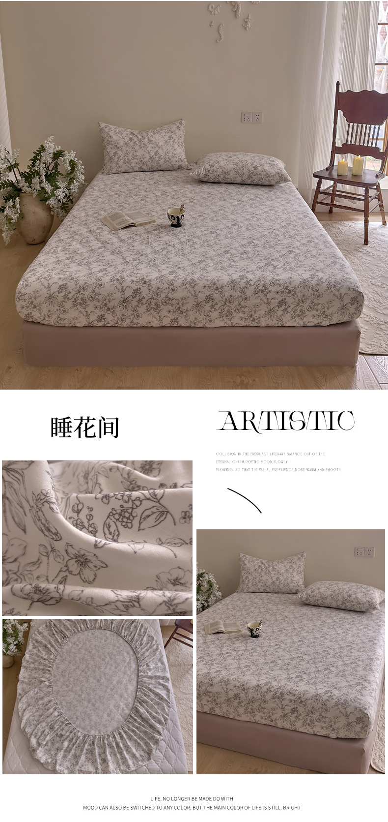 (总)DoDo 兜兜 2026新款全棉纯棉复古双层纱单品床单系列(可定做尺寸),攀枝花,眠香铺,墨蝶,青竹漫-灰,青竹漫-米,睡花间,叶语-灰