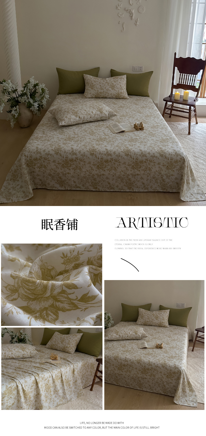 (总)DoDo 兜兜 2026新款全棉纯棉复古双层纱单品床单系列(可定做尺寸),攀枝花,眠香铺,墨蝶,青竹漫-灰,青竹漫-米,睡花间,叶语-灰