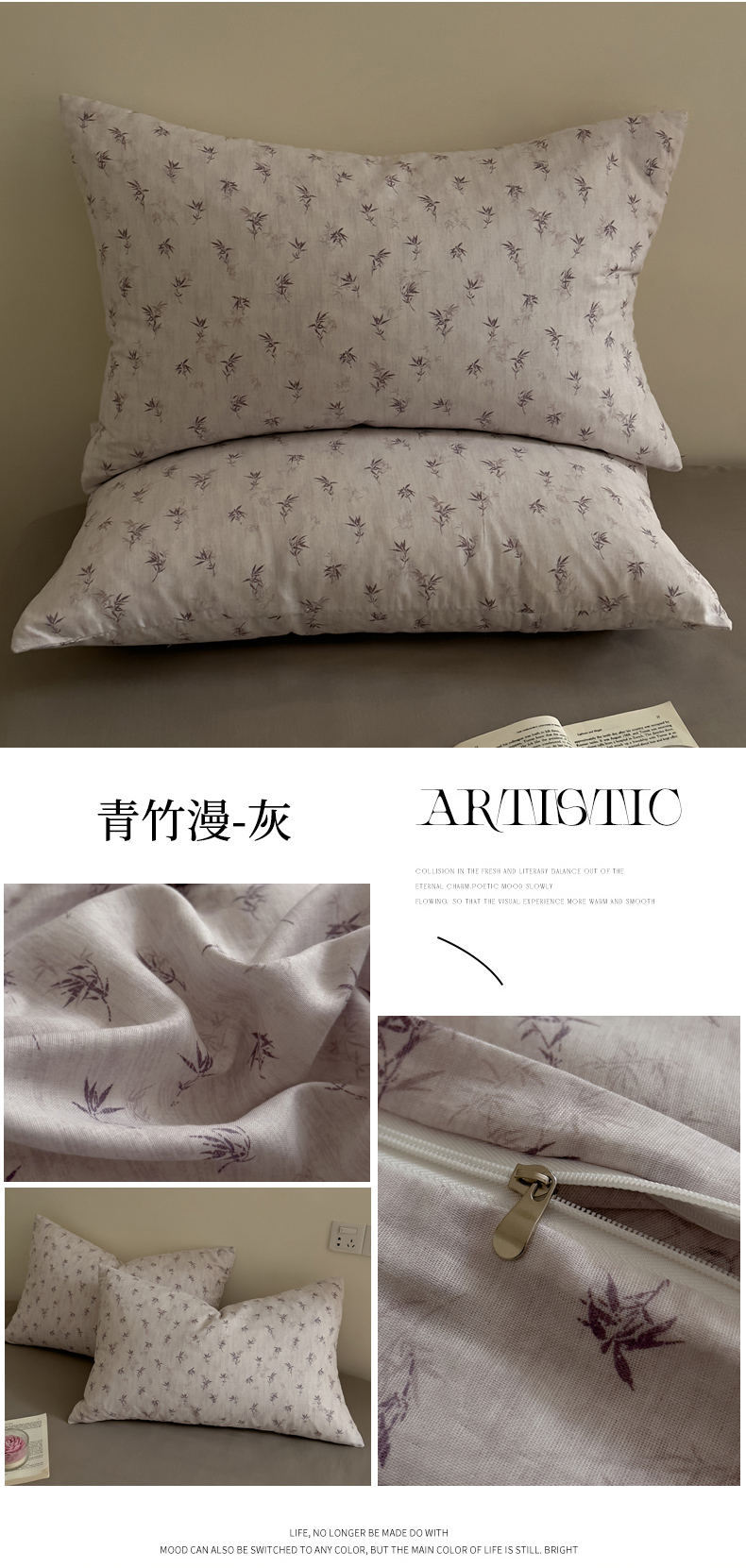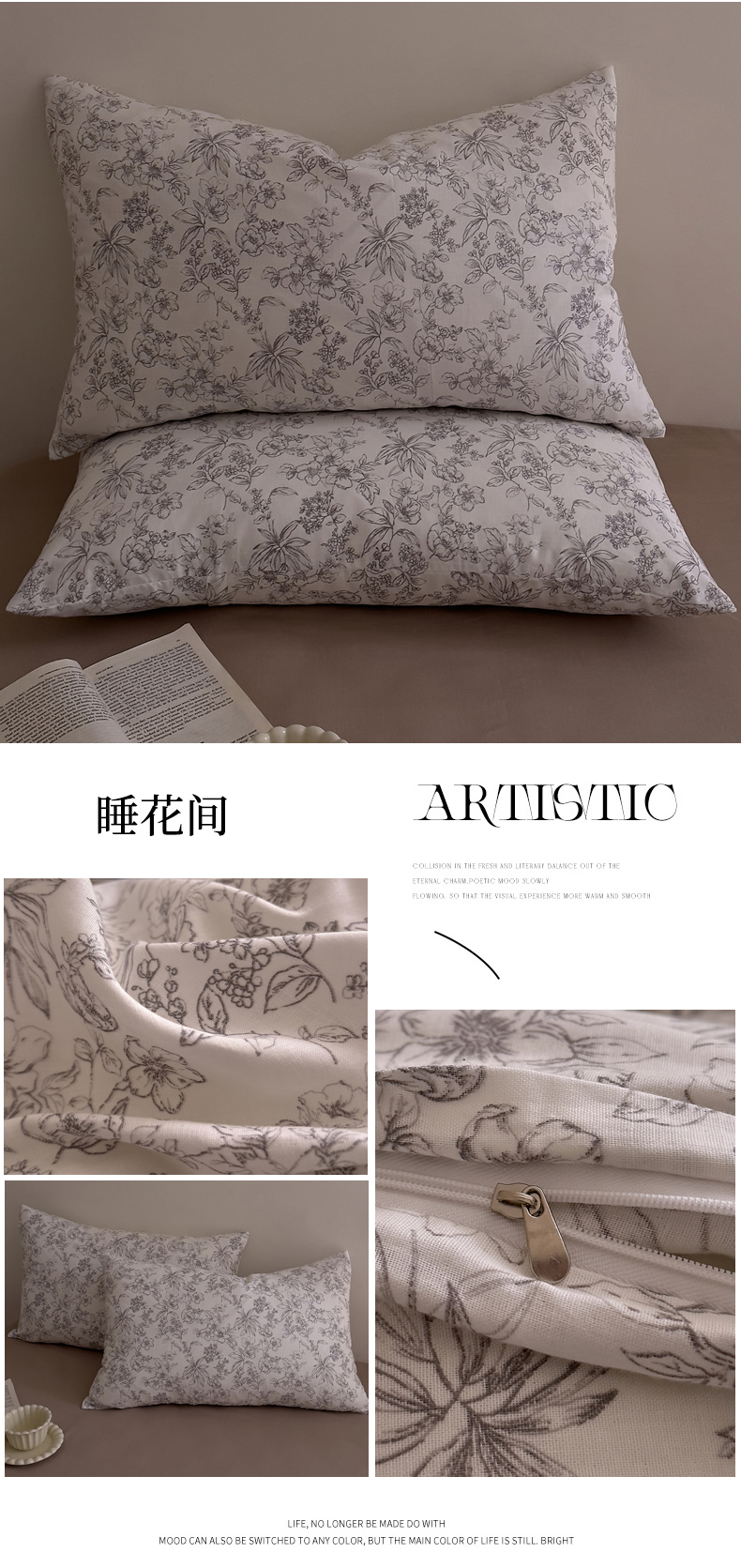 (总)DoDo 兜兜 2026新款全棉纯棉复古双层纱单品枕套系列(可定做尺寸),攀枝花,眠香铺,墨蝶,青竹漫-灰,青竹漫-米,睡花间,叶语-灰
