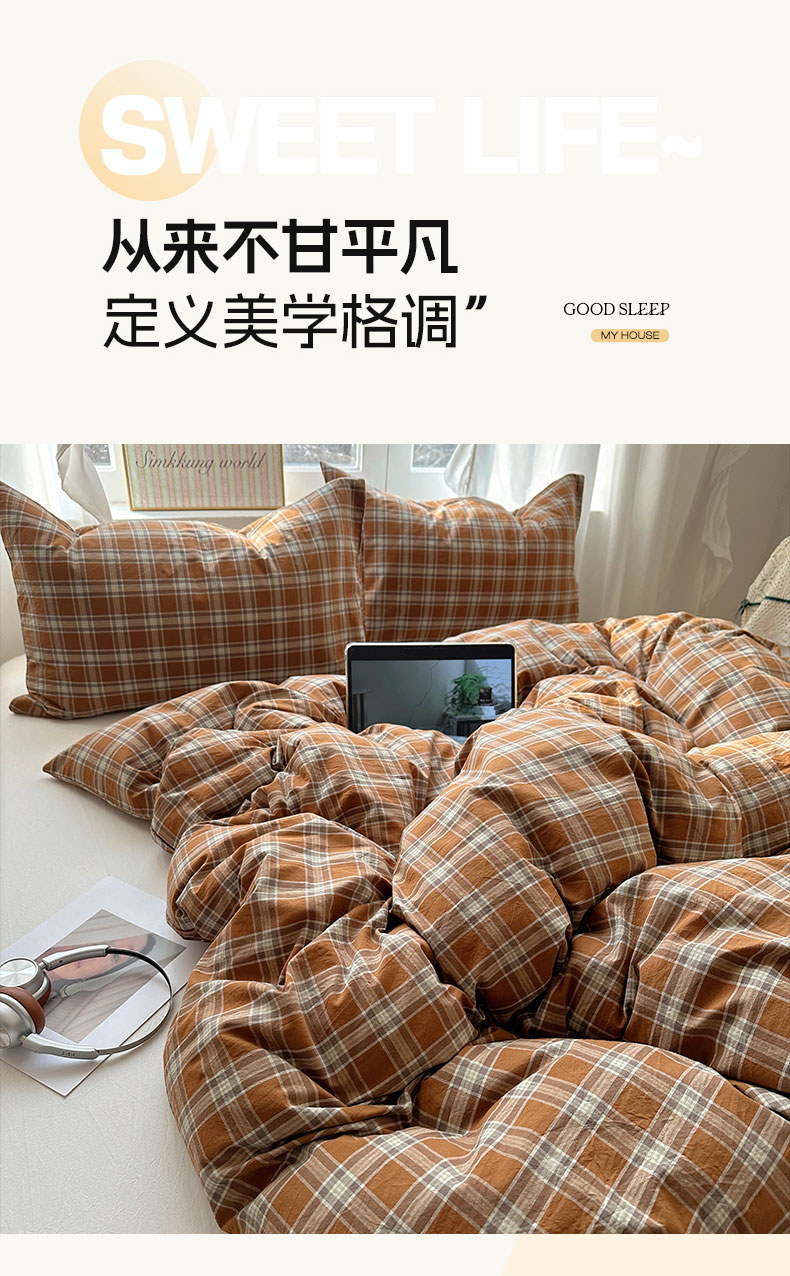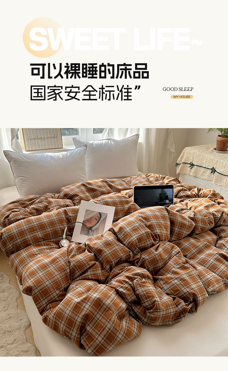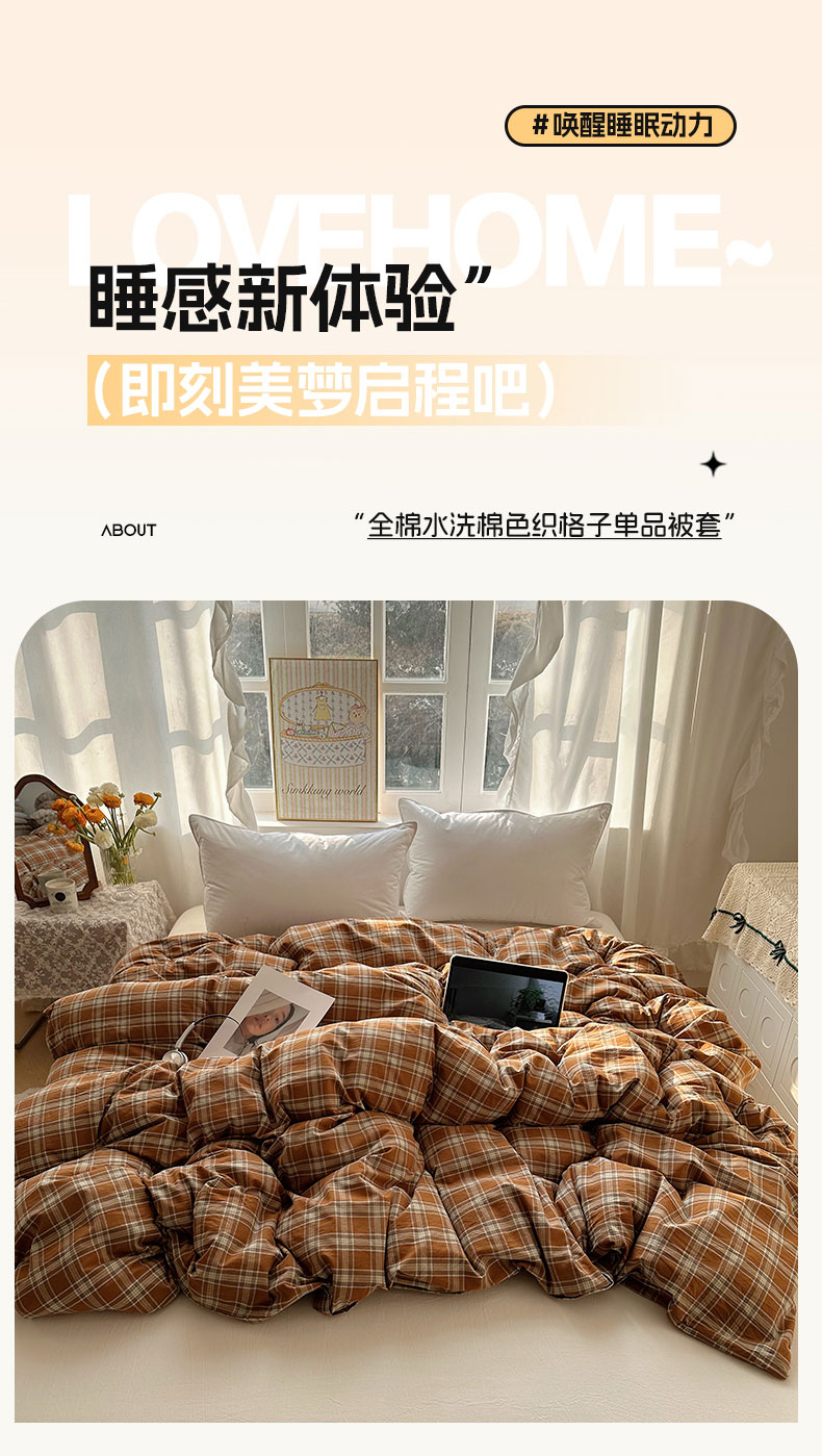 六巷胡同 2026新款A类全棉纯棉水洗棉色织格子单品被套 被套单件 川奈-咖格