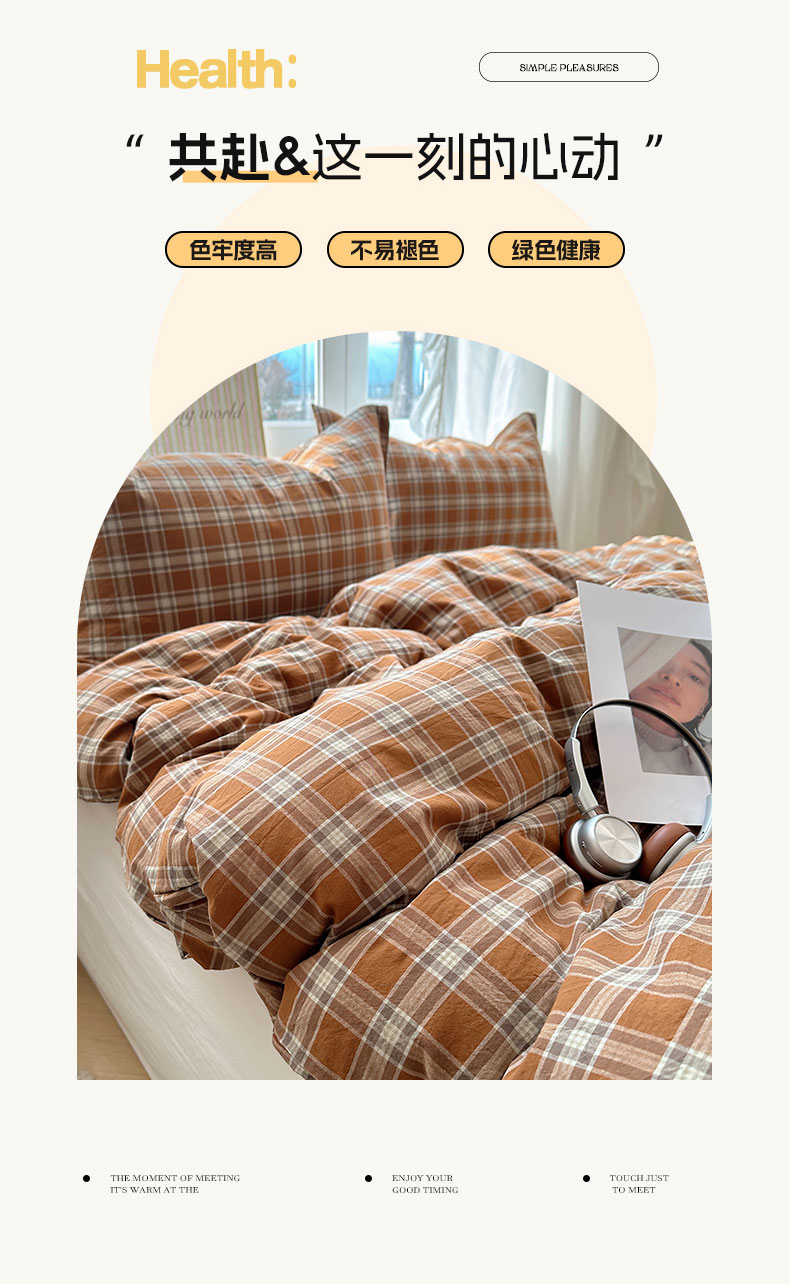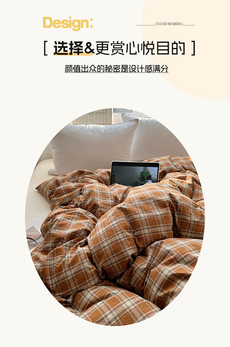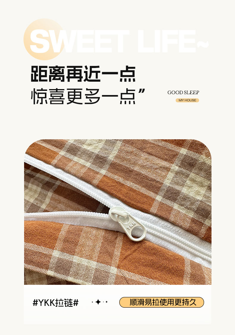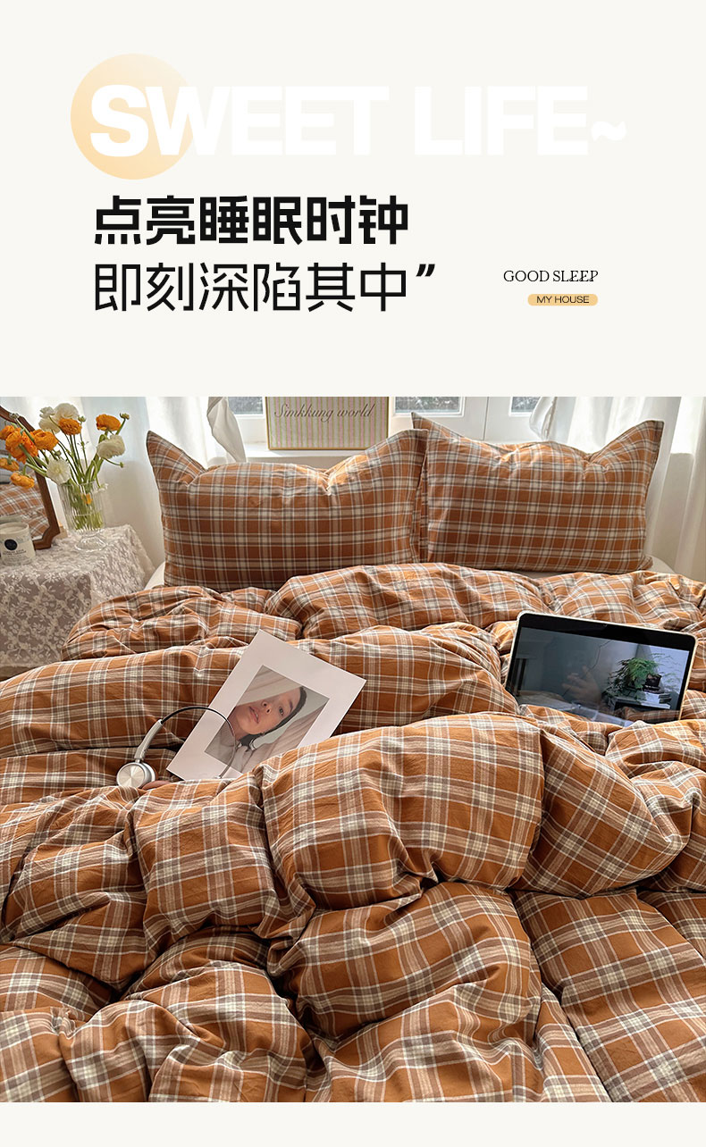 六巷胡同 2026新款A类全棉纯棉水洗棉色织格子单品被套 被套单件 川奈-咖格