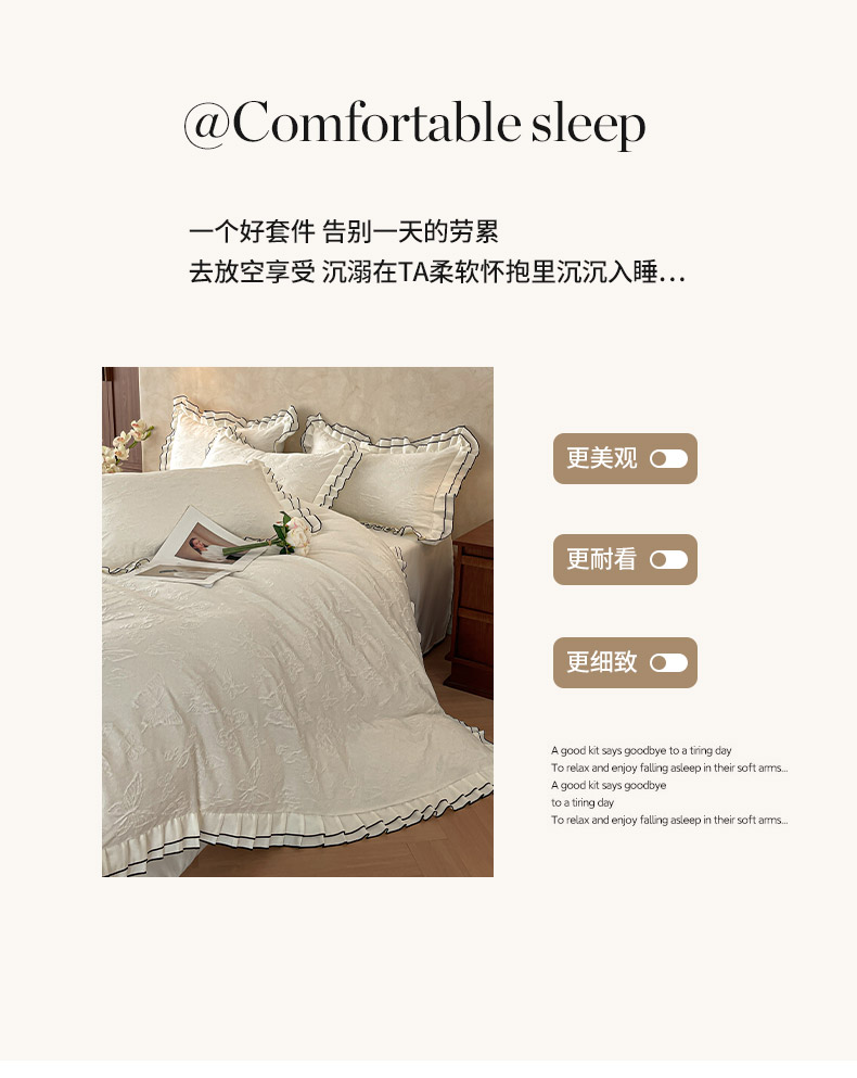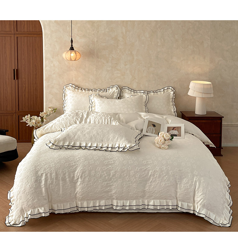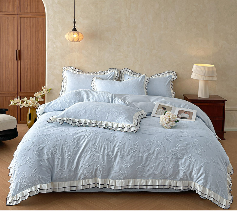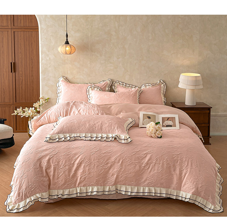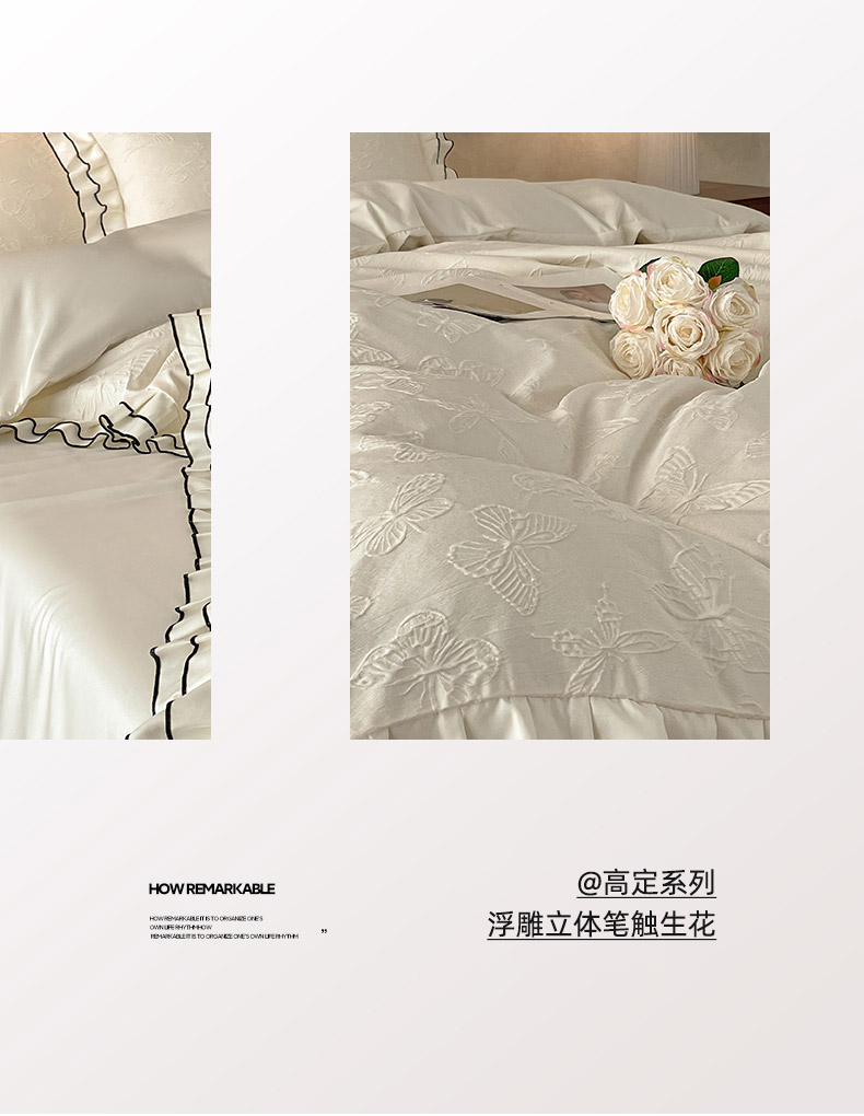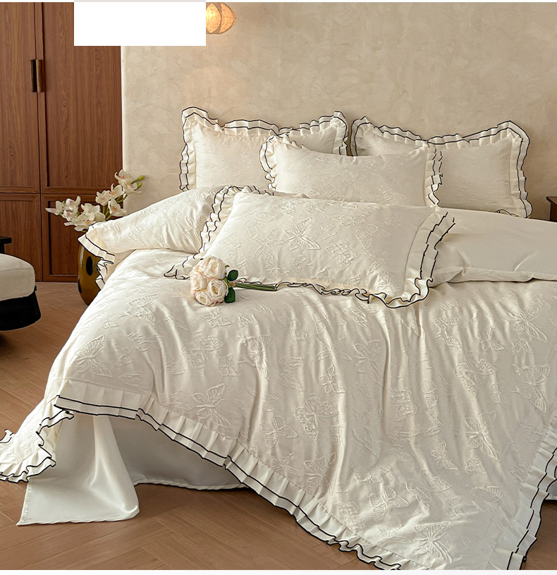 当前位置: 91家纺网 > 商品网购 > 床品套件 > 四件套 > 其它四件套 > 金阳光家纺 2026新款立体浮雕双层花边水洗真丝四件套 蝴蝶-白