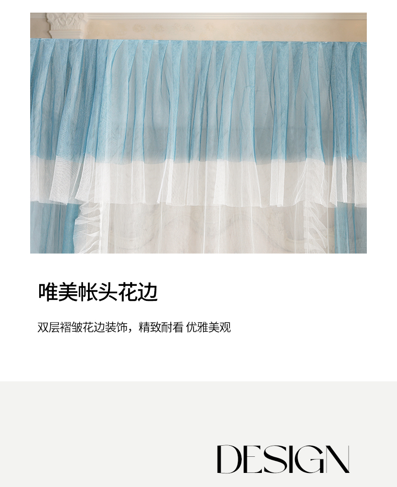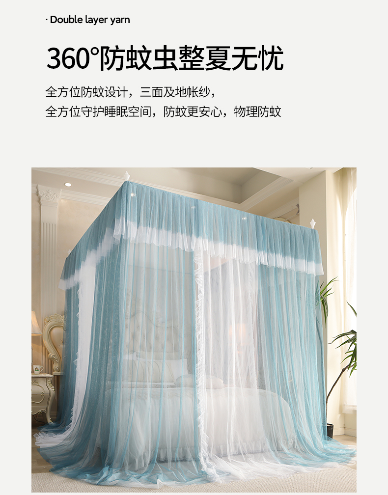 (总)青竹苑 2026春夏新款双层纱撞色落地蚊帐,孔雀蓝,薄荷绿,宝蓝,嫩粉色,柠檬黄,太妃紫,香槟色,玉色
