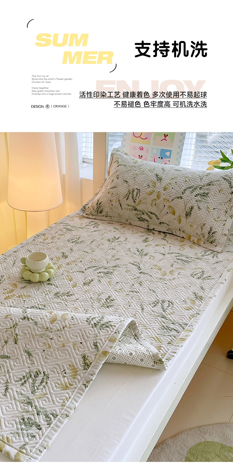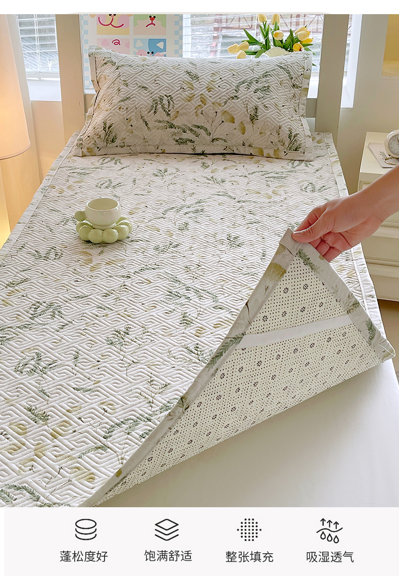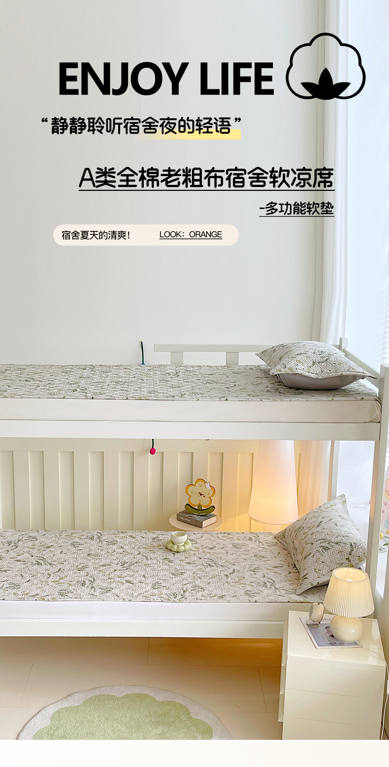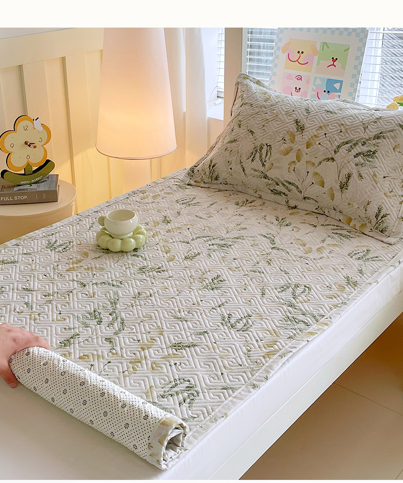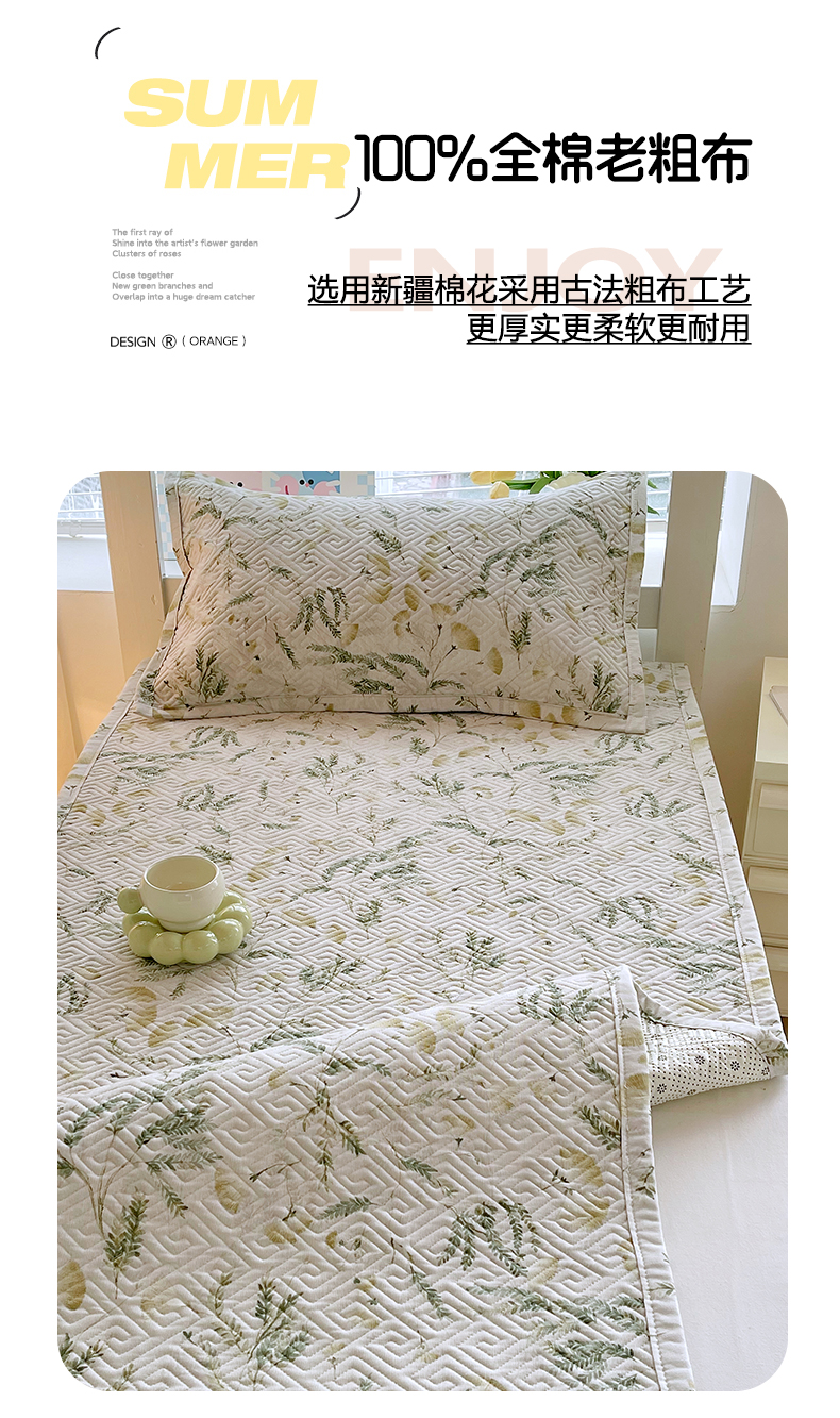 当前位置: 91家纺网 > 商品网购 > 床上用品 > 凉席 > 其他凉席 > 金鑫汇家纺 2026春夏新款学生床新花型老粗布床盖夹棉软凉席席子可以机洗 学生床-月下花影-绿