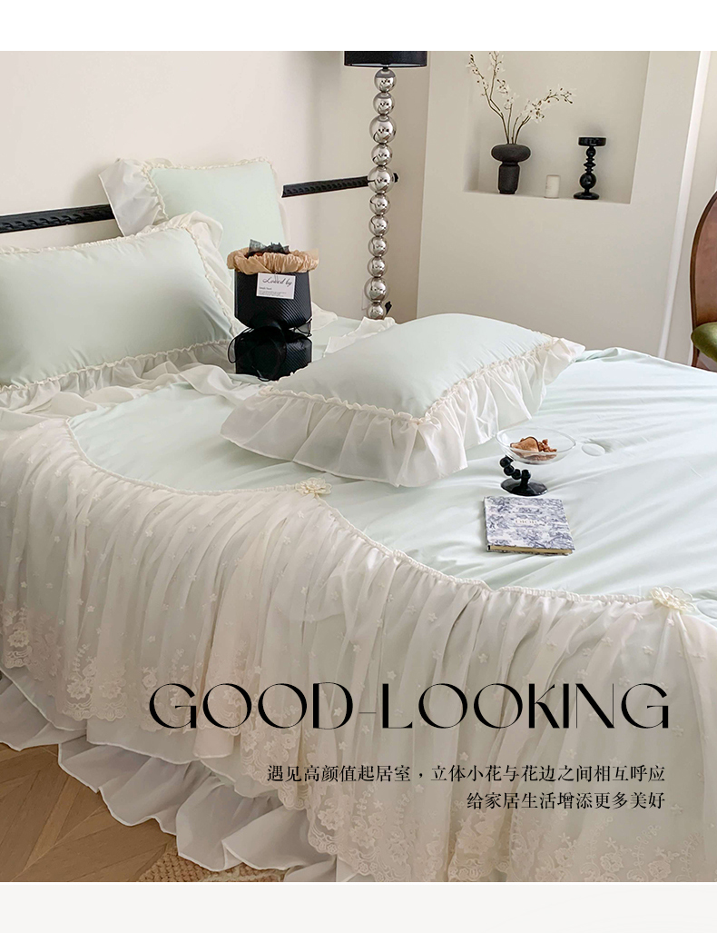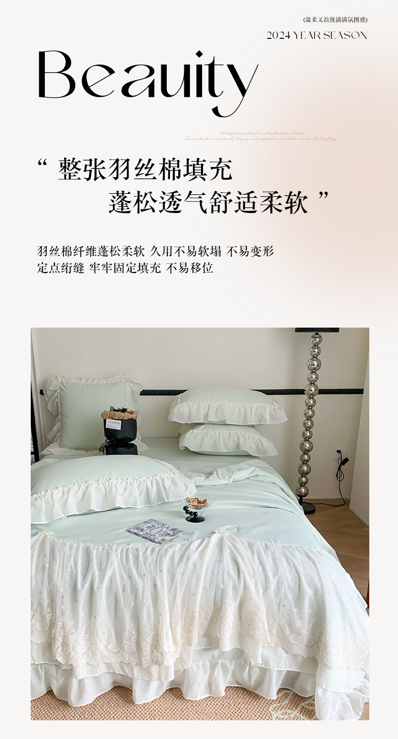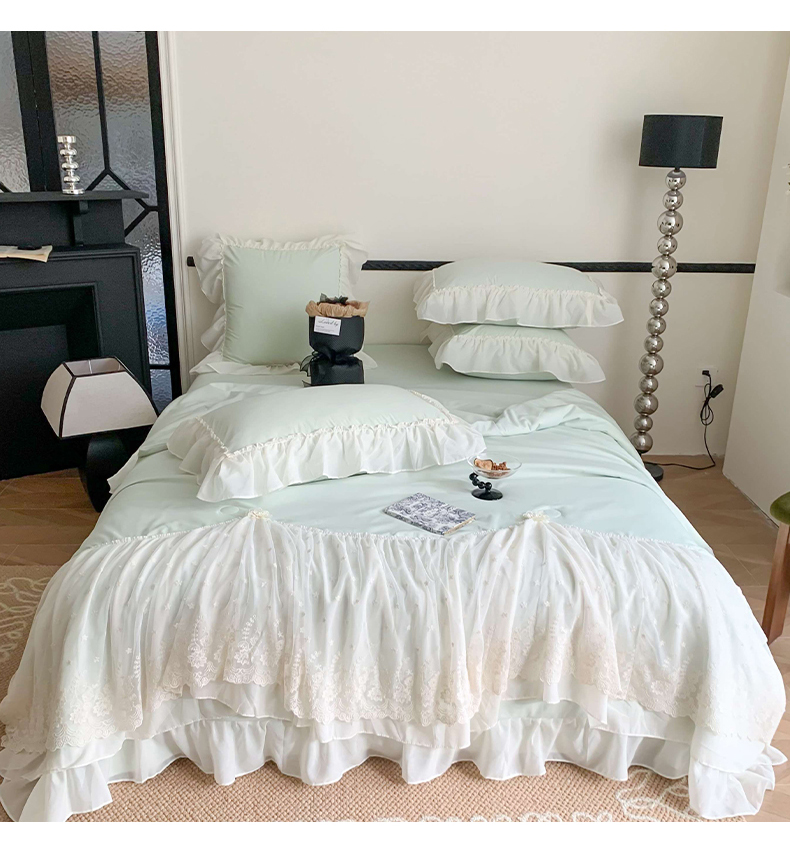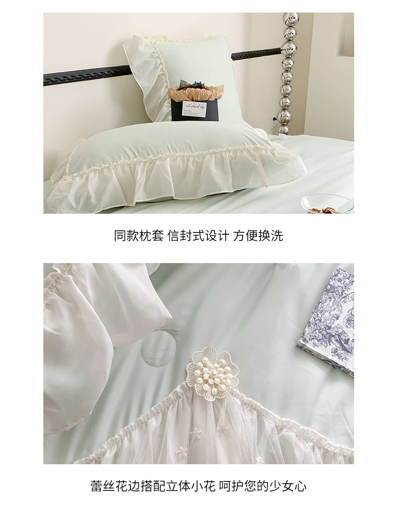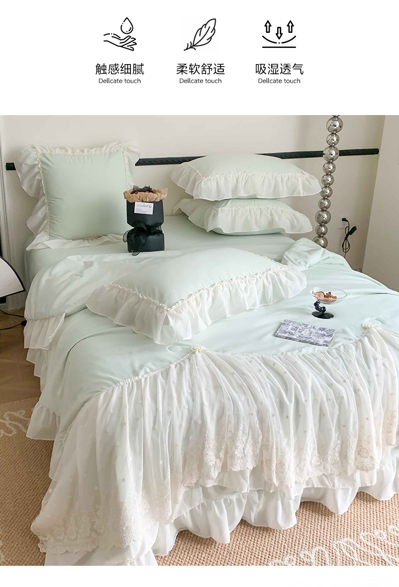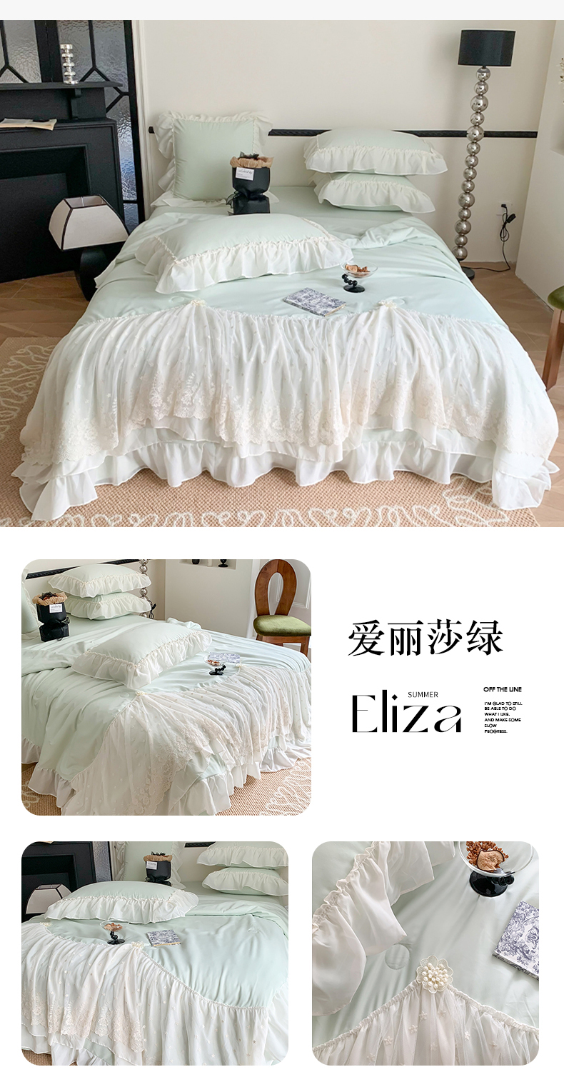 商品名称:吾欢心 2026新款A类法式花边爱丽莎夏被四件套 爱丽莎绿