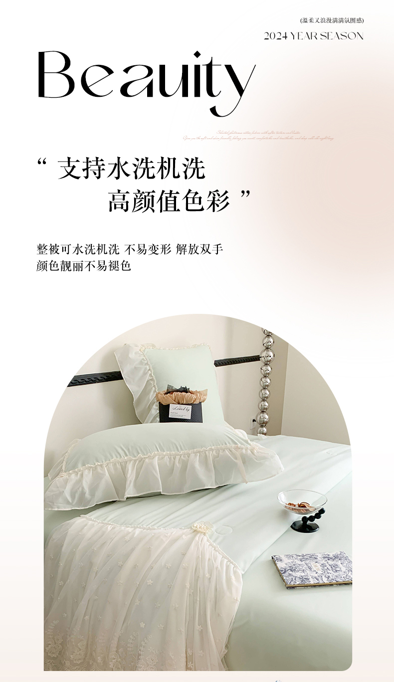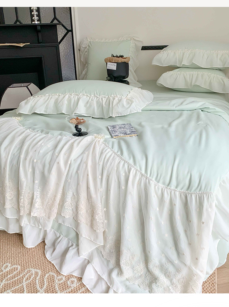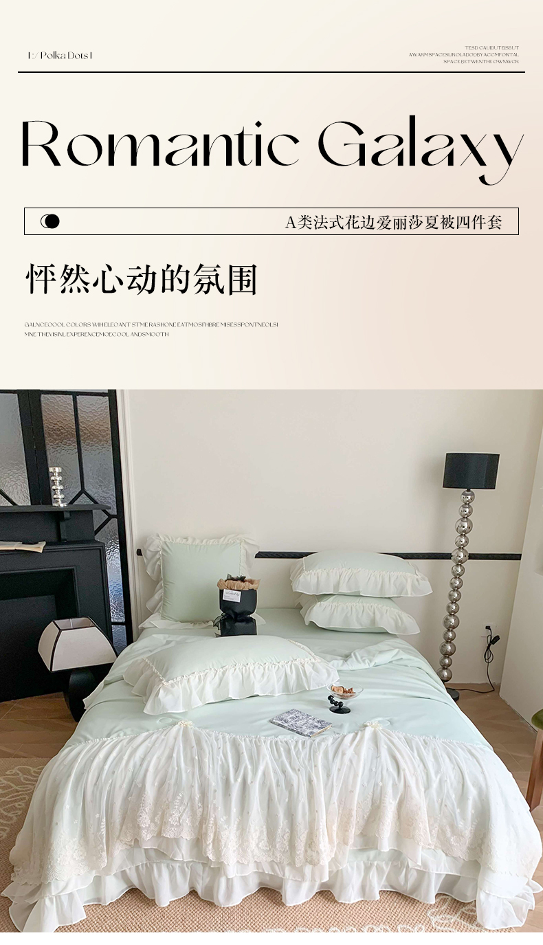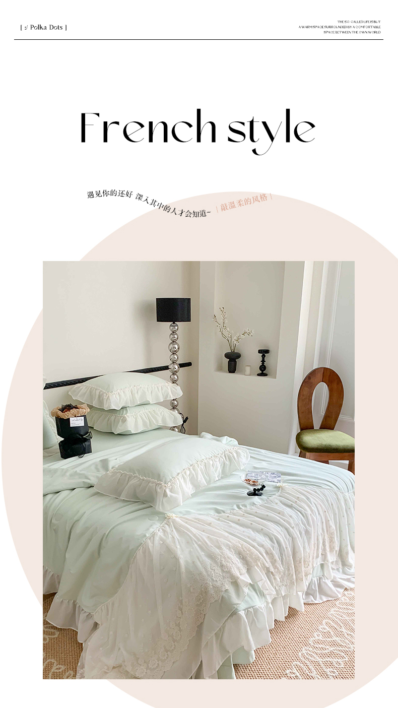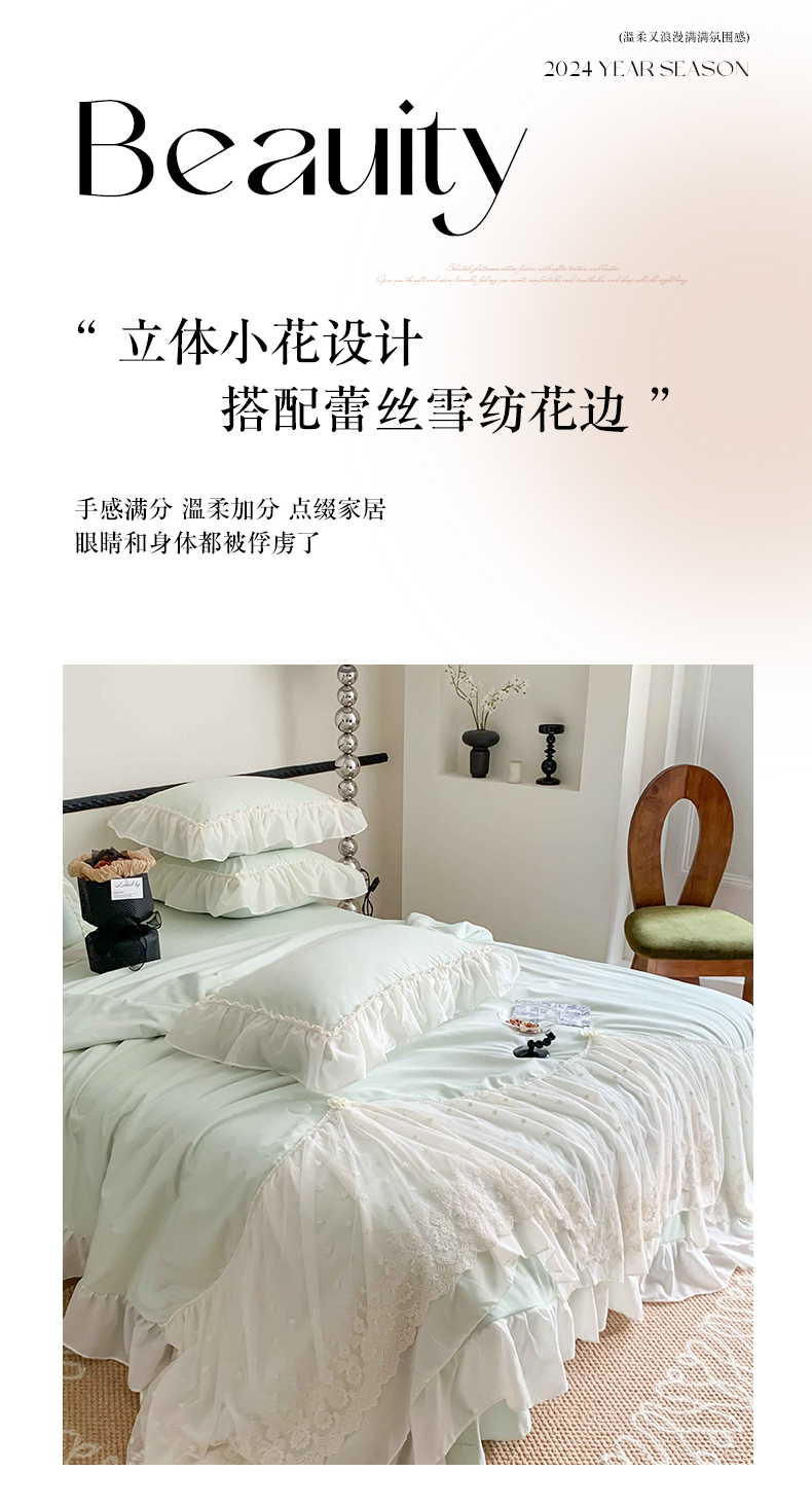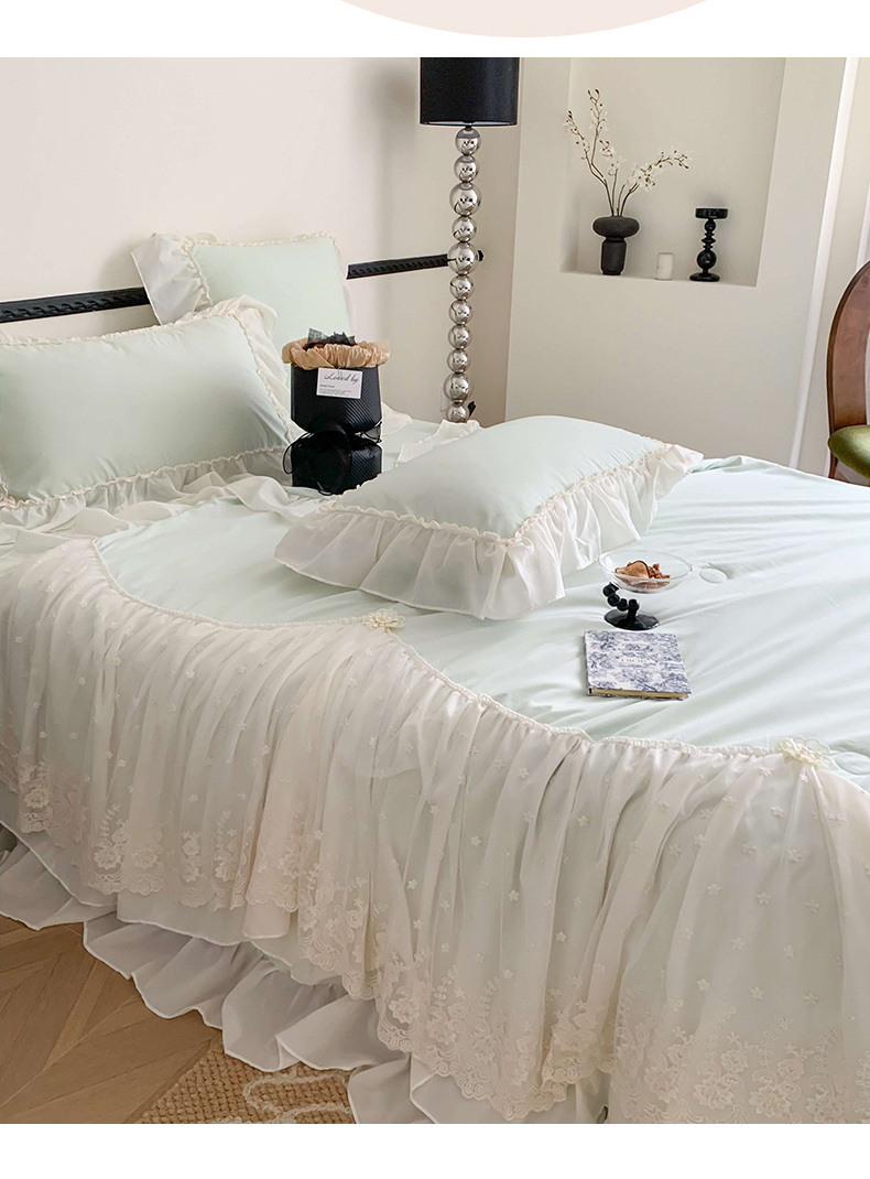 商品名称:吾欢心 2026新款A类法式花边爱丽莎夏被四件套 爱丽莎绿