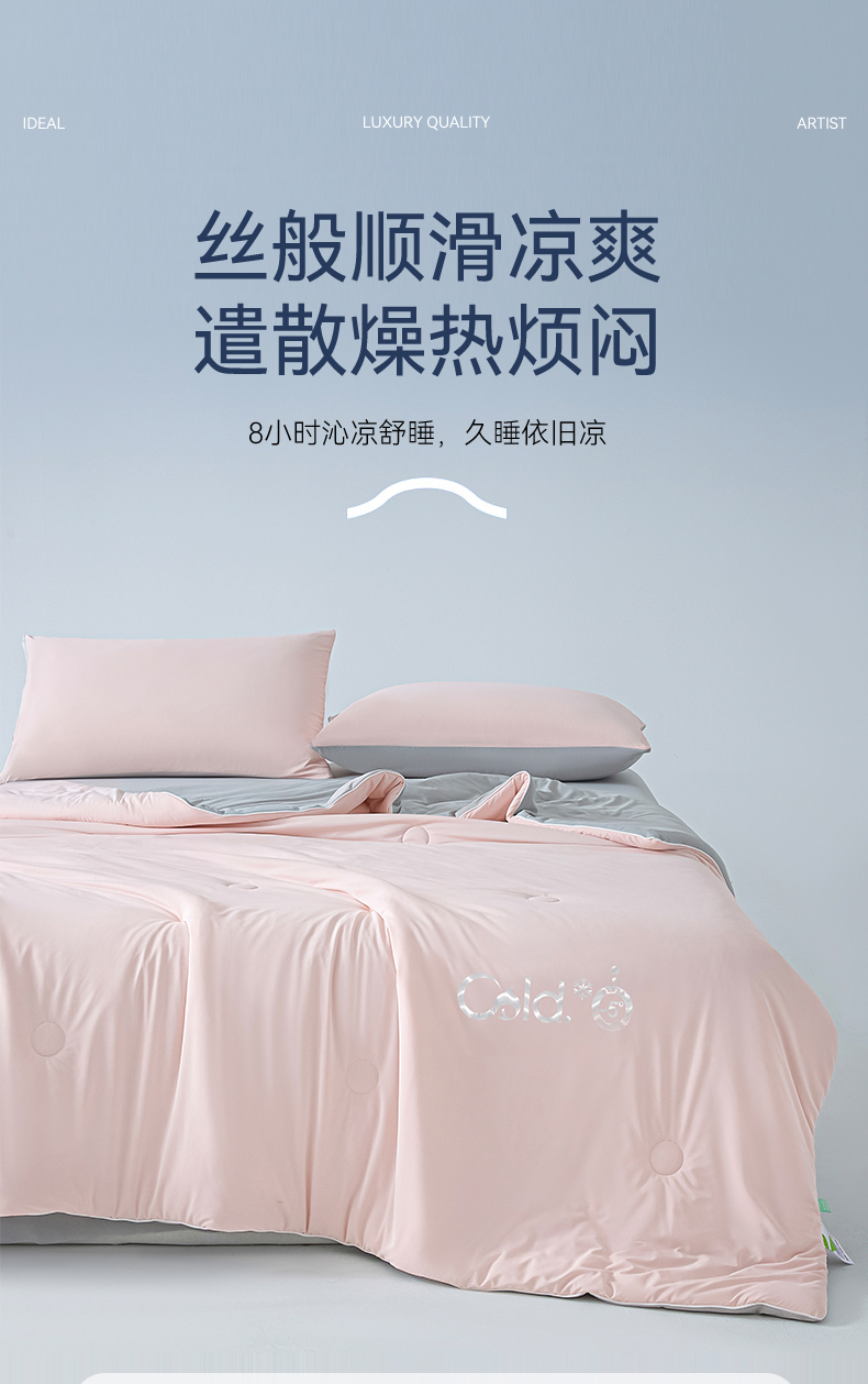 商品名称:永耀家纺 2026新款纯色双拼凉感丝大豆夏被夏凉被空调被 凉感-粉灰