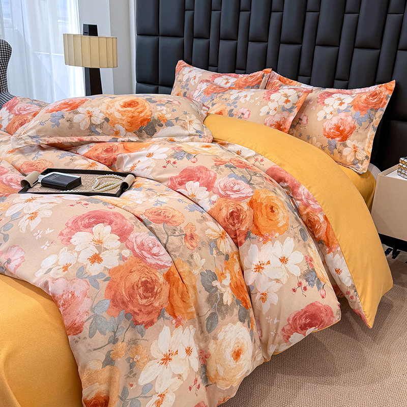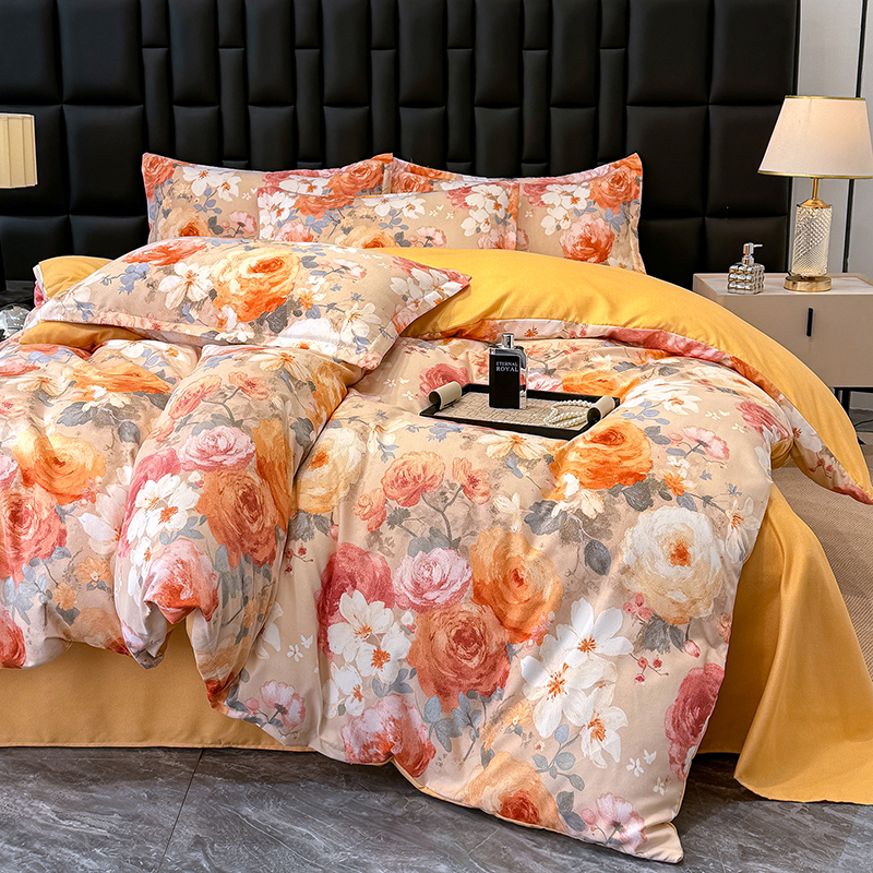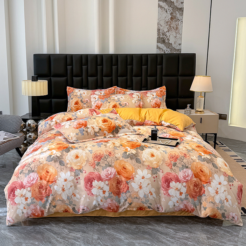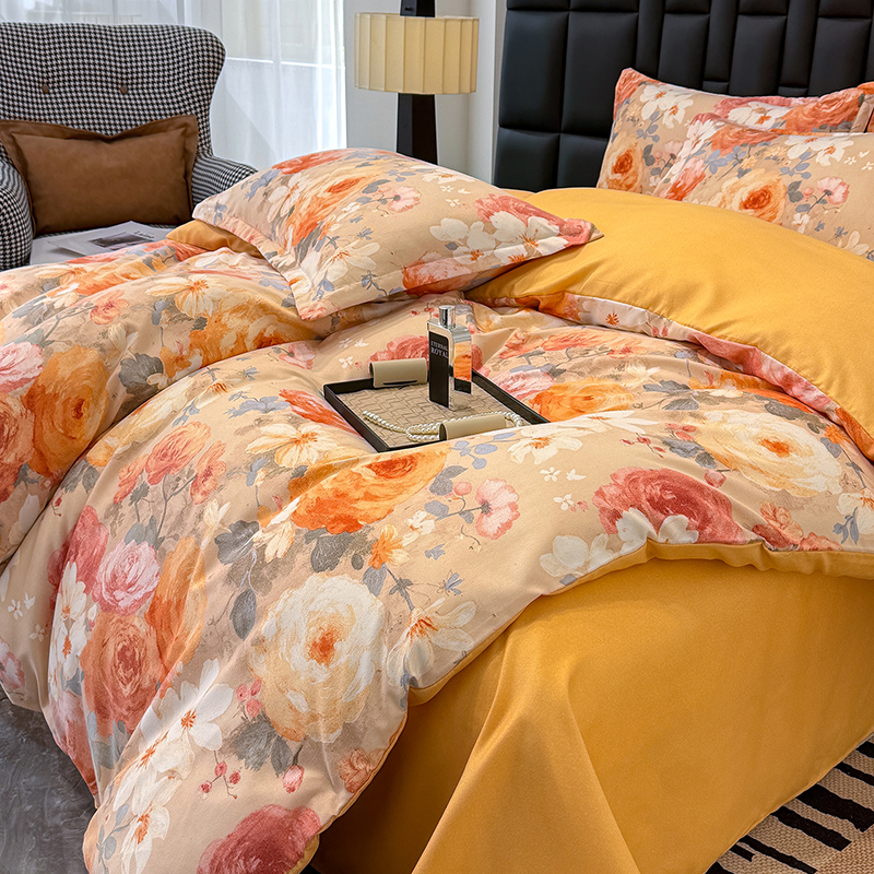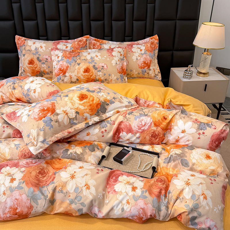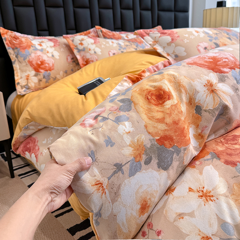 桔禾家纺 2026新款田园花卉小清新直播加厚植物羊绒四件套高克重磨毛跨境四件套 大量现货 巴黎春天