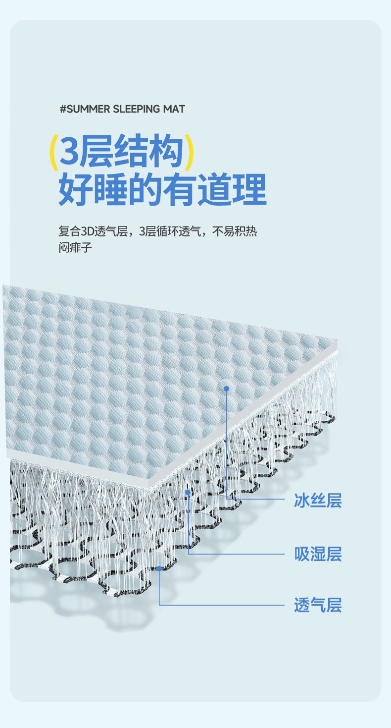 • 91家纺网 家纺一手货源 找家纺 睡美美家纺 2026新款3D豆豆凉席冰丝席按摩席夏凉席床单床裙款三件套热销款 冰川蓝-床裙款