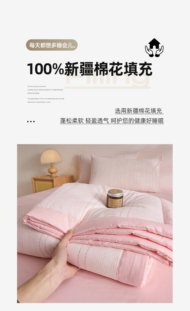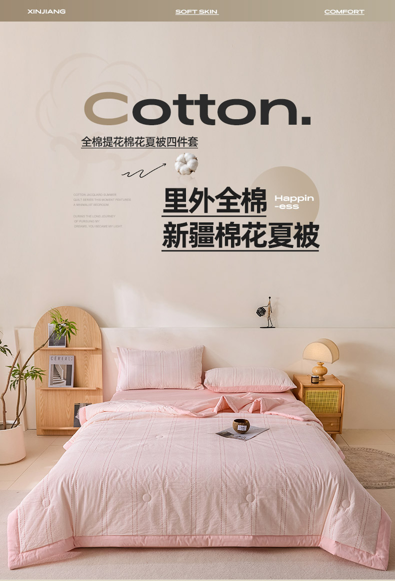(总)吾秀家居 2026新款全棉纯棉大提花新疆棉花夏被夏凉被空调被四件套-律动,律动-奶咖,律动-浅灰,律动-深灰,律动-天兰
