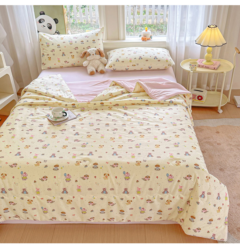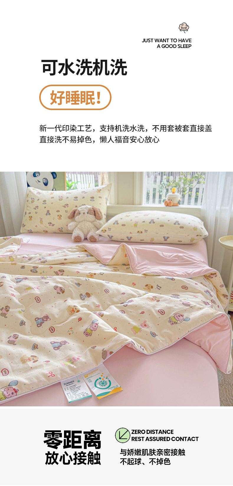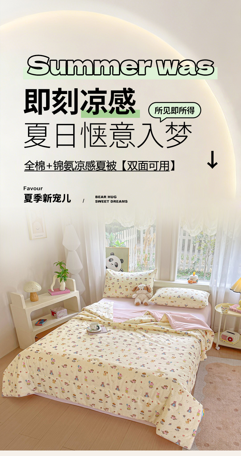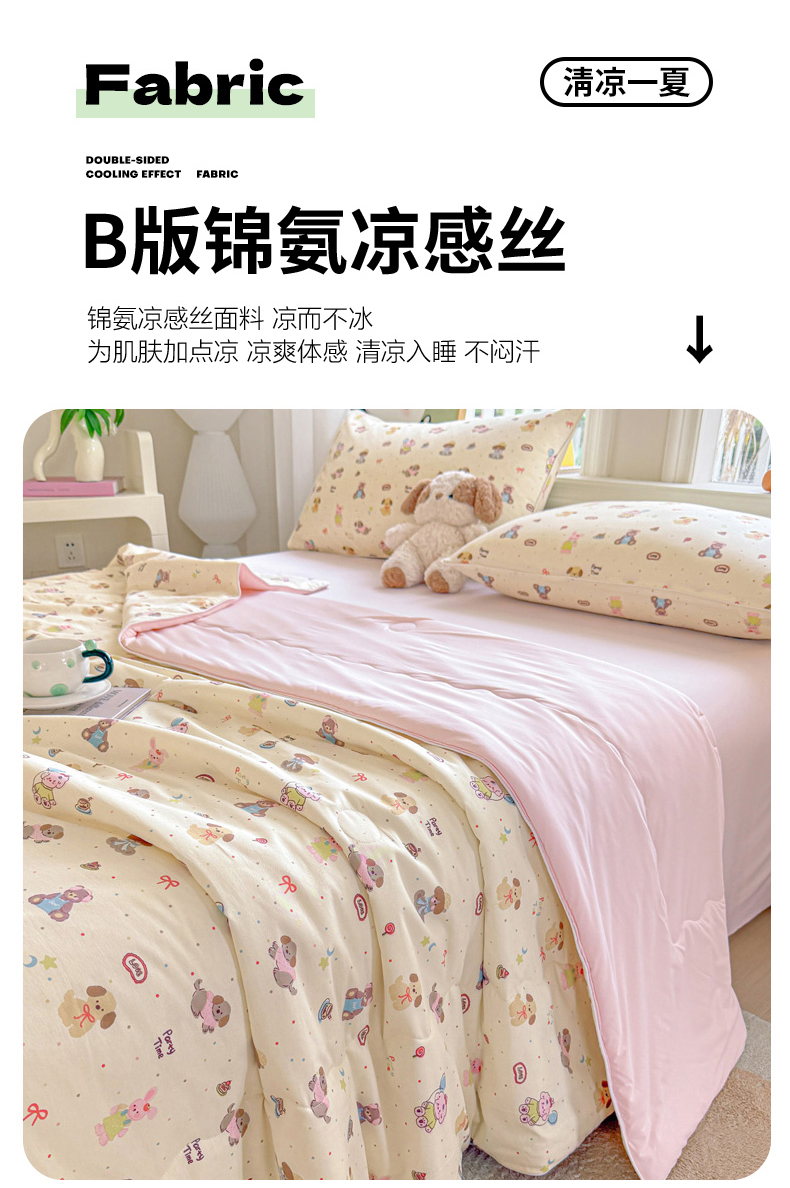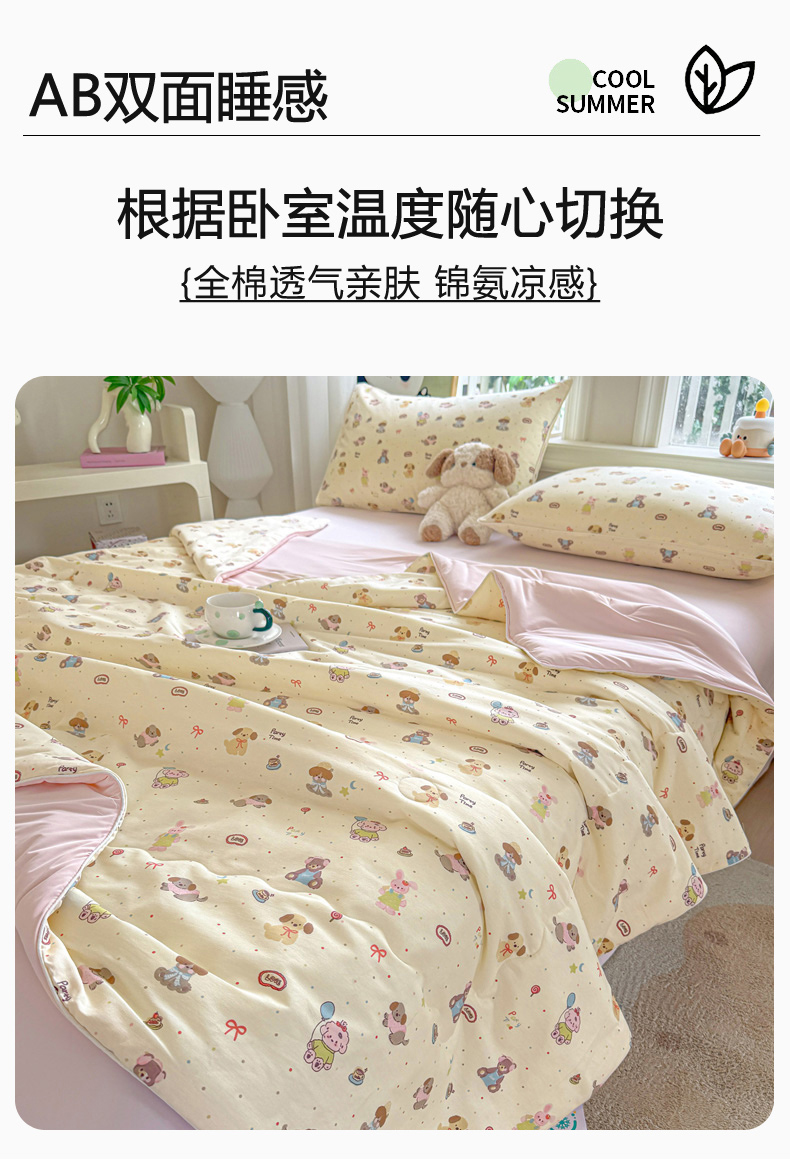 万盛家纺 2026新款全棉锦氨凉感夏被夏凉被空调被 韩系小萌物