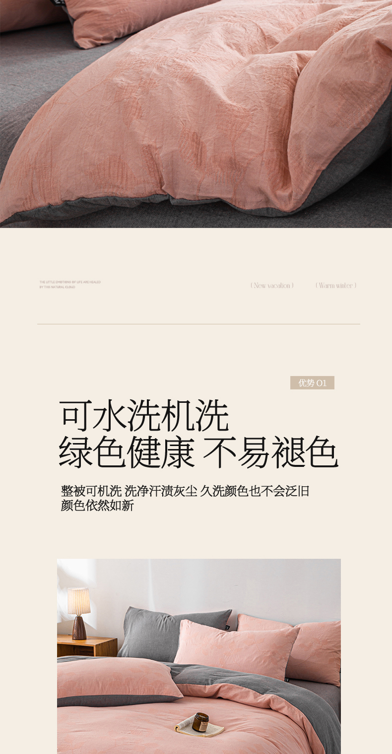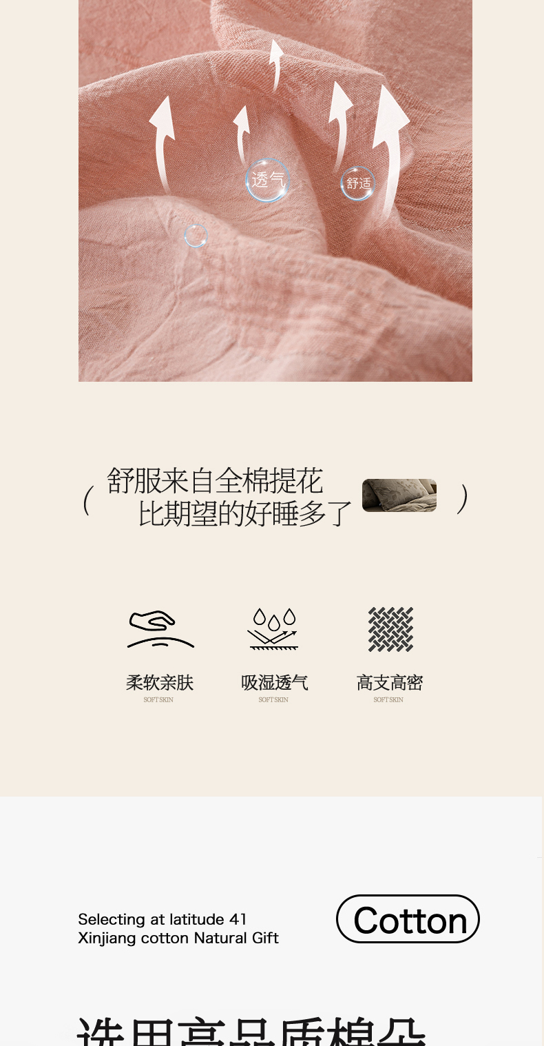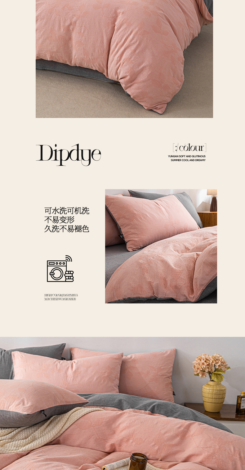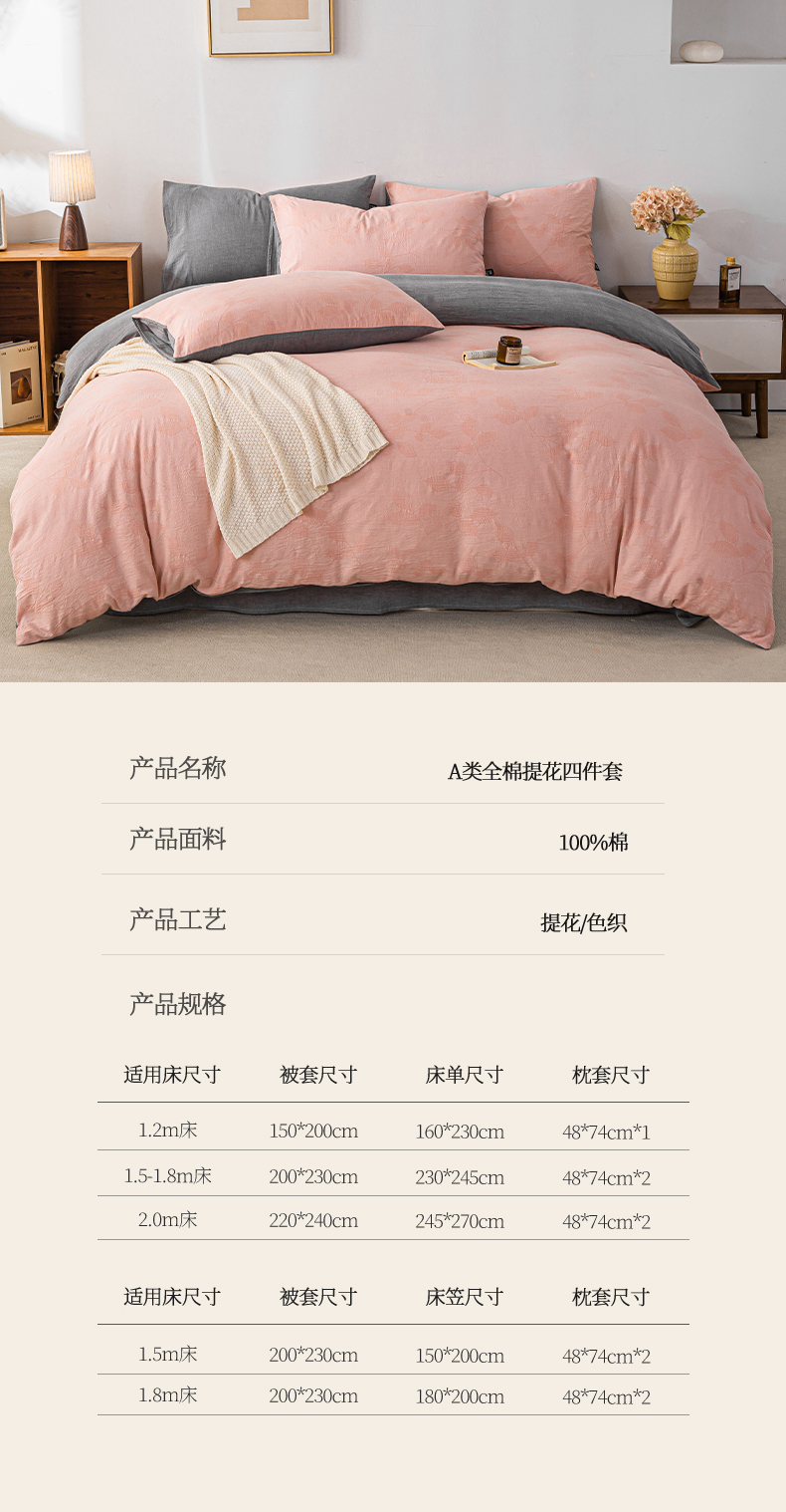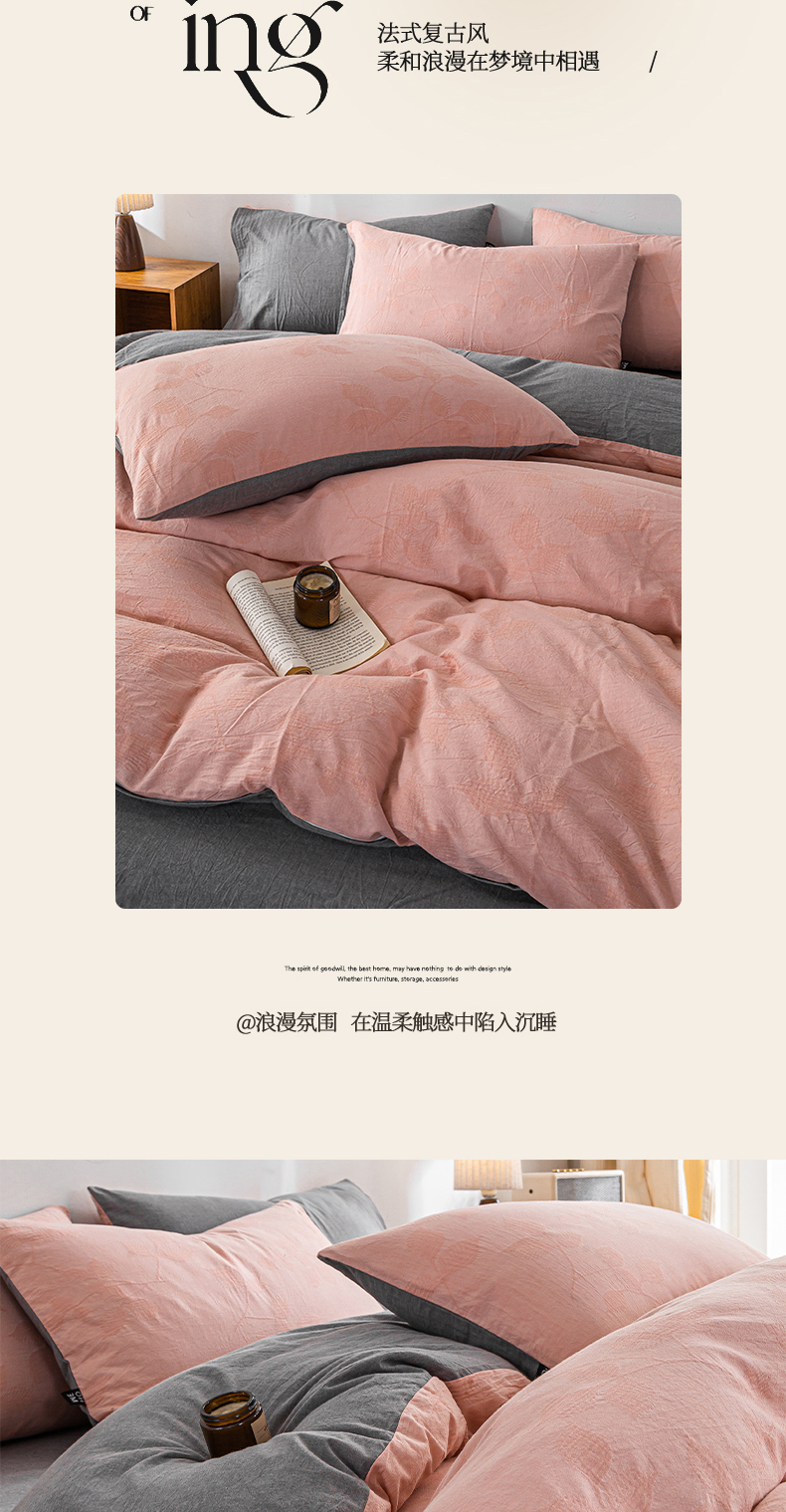 (总)恋人优选 2026新款浮光全棉纯棉提花四件套,浮光粉,浮光灰,浮光咖,浮光卡其,浮光兰