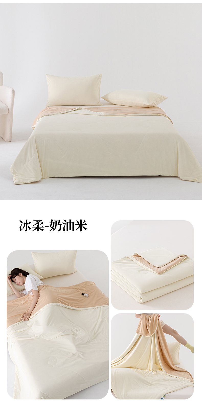 商品名称:优被业 2026新款云感凉感丝夏凉被 抗菌防螨超清爽 冰柔-奶油米