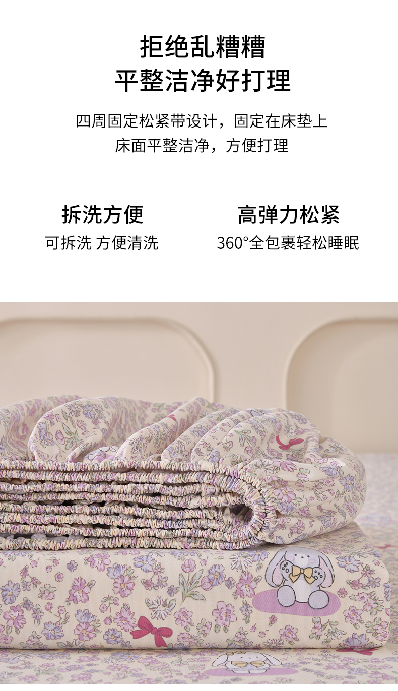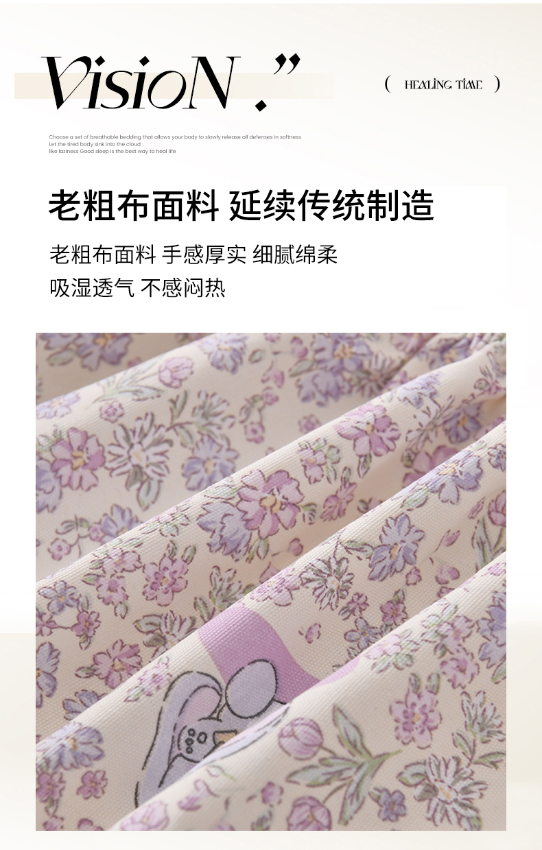 • 91家纺网 家纺一手货源 找家纺 悠米悠家 2026新款工艺款印花老粗布床笠单品床笠床笠单件凉席席子 花间垂耳兔
