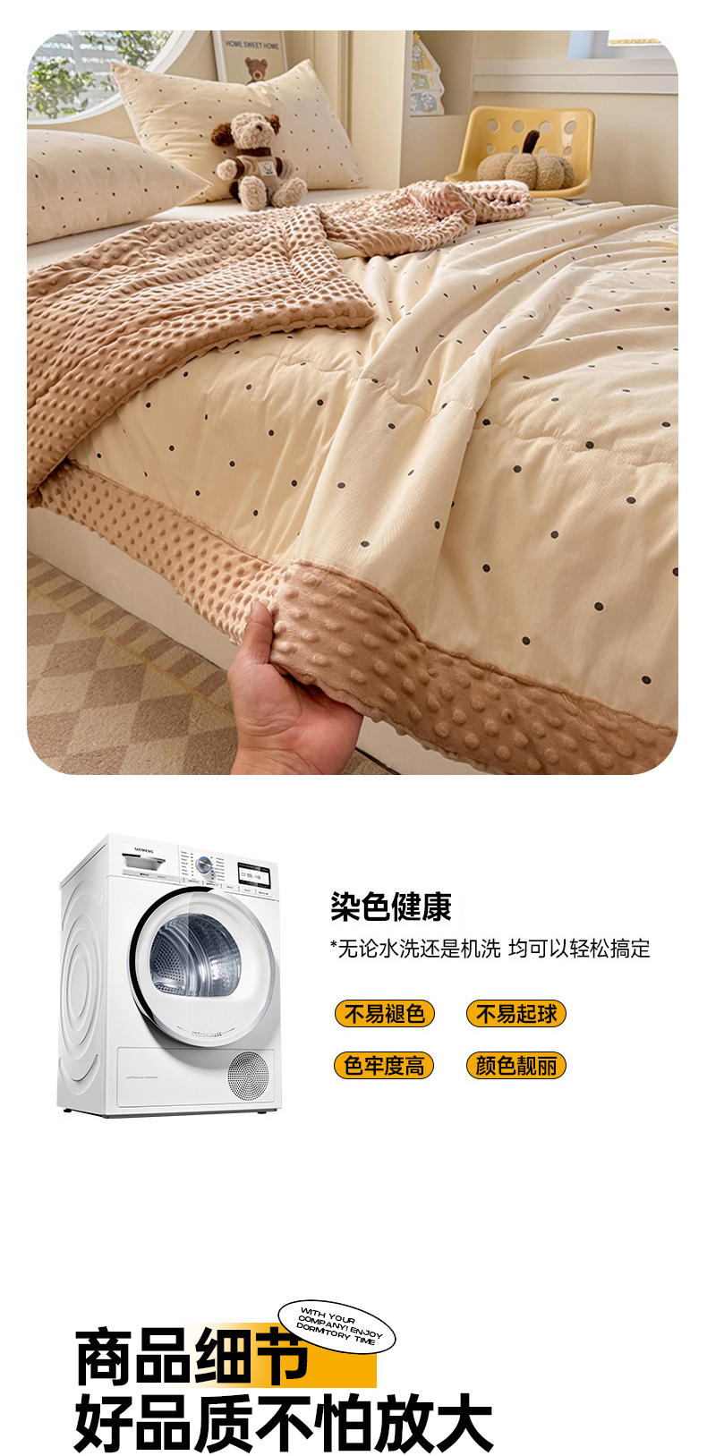 • 91家纺网 家纺一手货源 找家纺 梦依依 2026新款柔软舒适A类全棉豆豆被夏被春秋被子被芯 小黑点点-米
