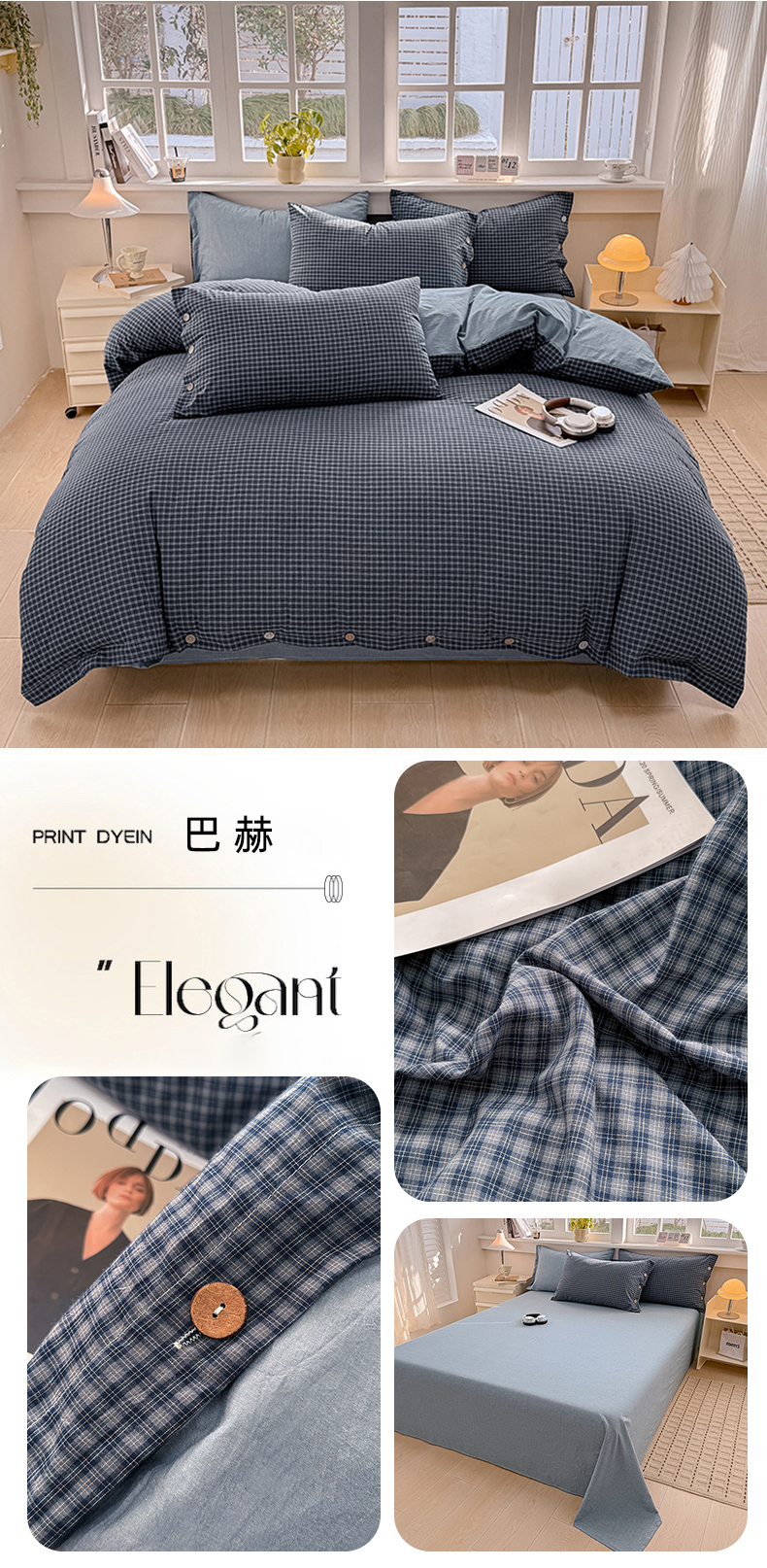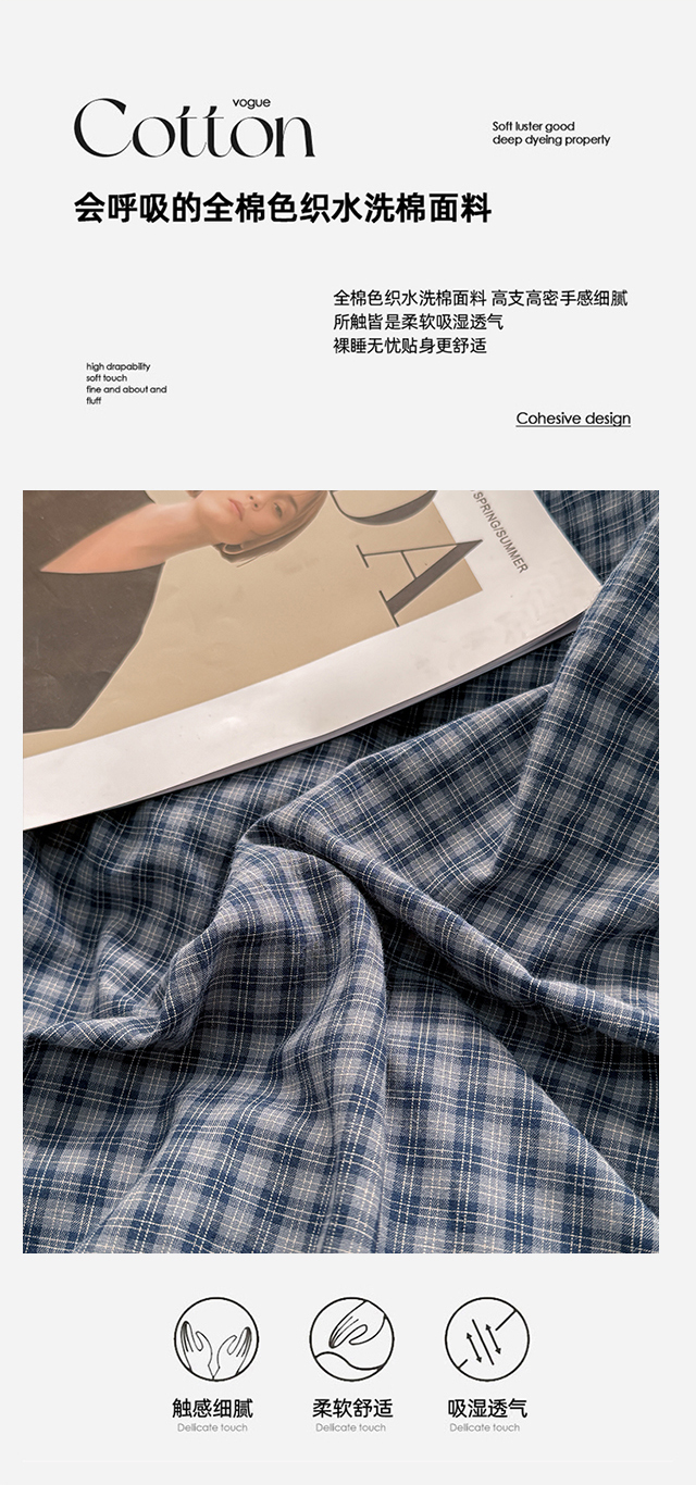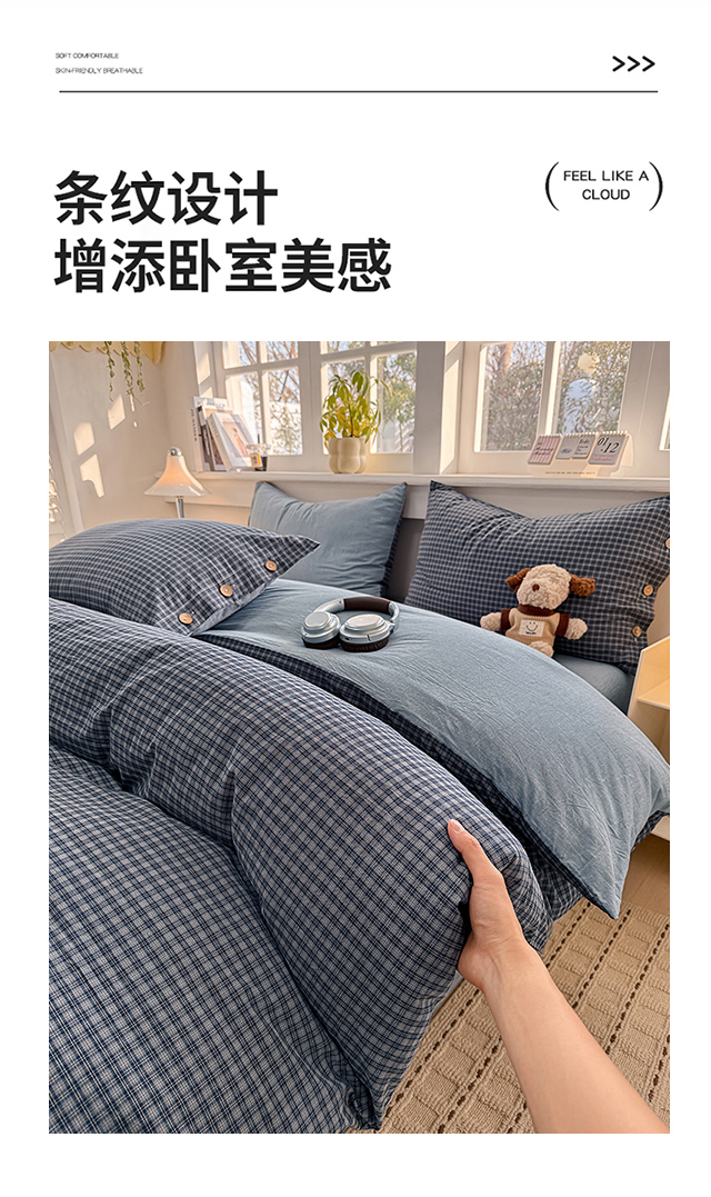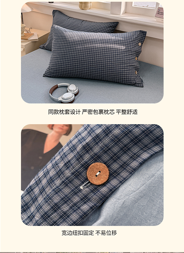 商品名称:梦依依 2026新款A类全棉色织水洗棉纯棉格子钮扣款四件套学生宿舍三件套 巴赫