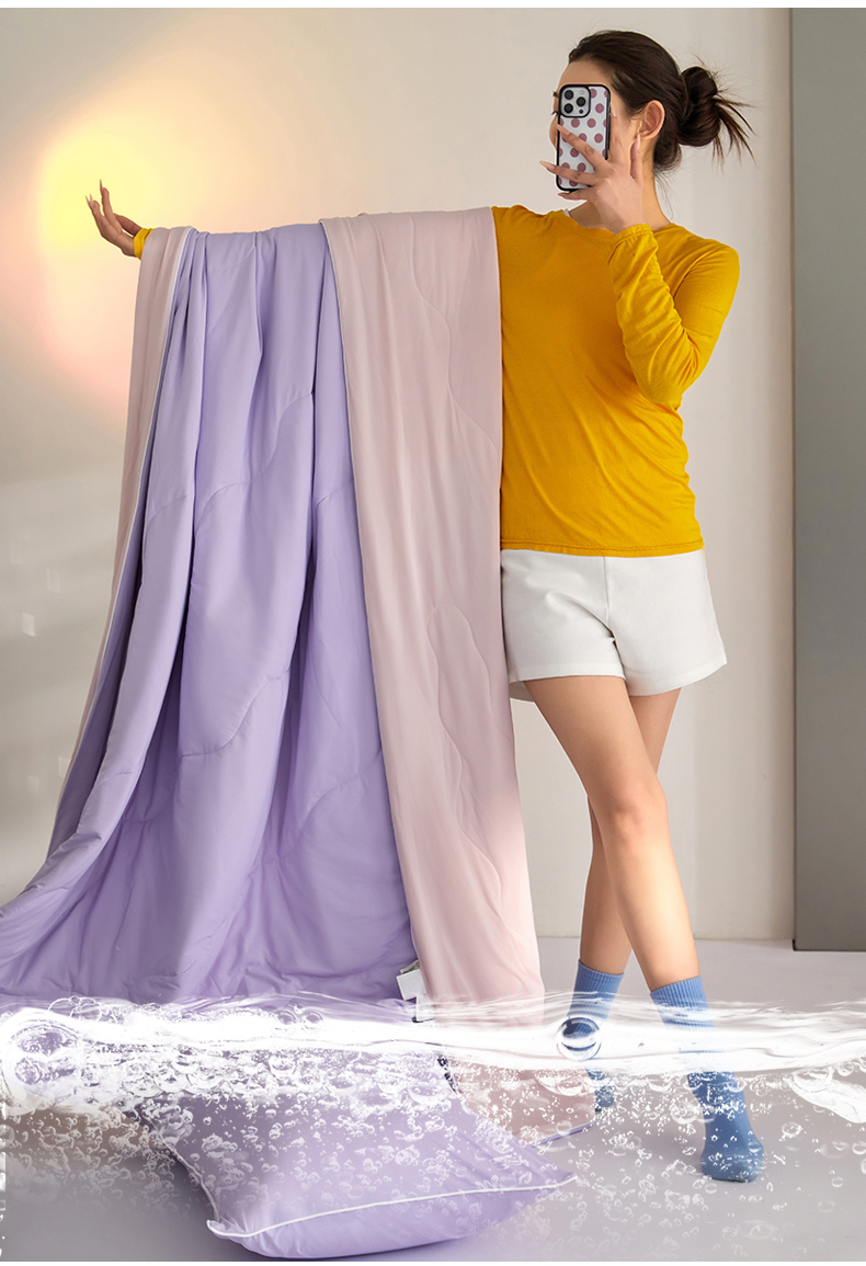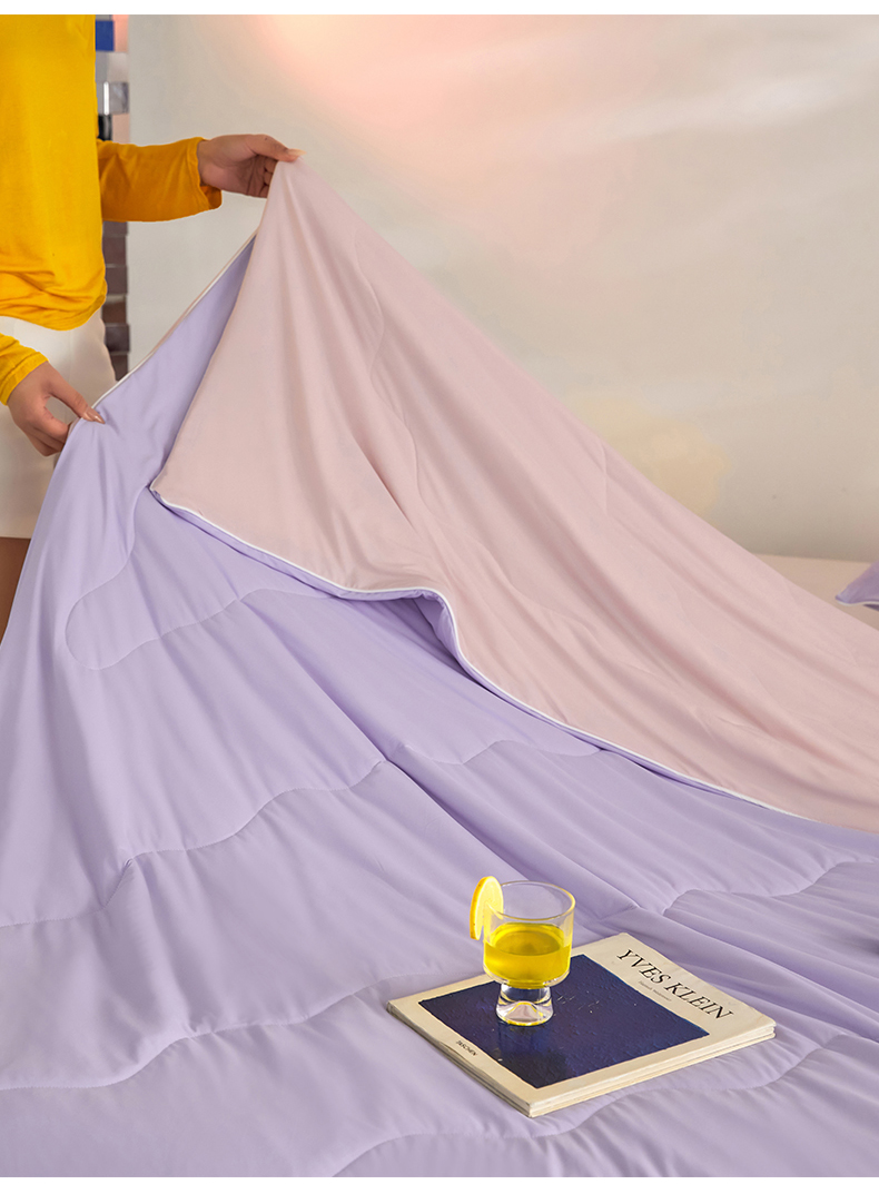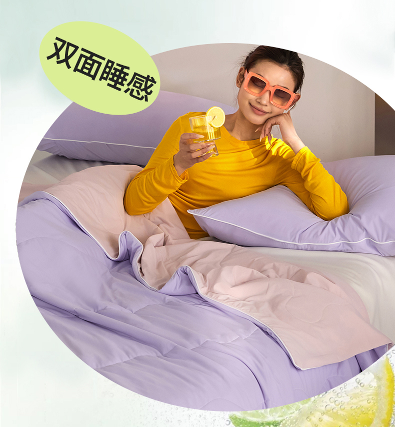 (总)头等舱 2026新款4.0版凉感A类锦氨(165克)55大豆抗菌夏凉被夏被配礼盒模特图,典雅兰,典雅兰拼黄绿,典雅兰拼浅灰,黄绿拼嫣然紫,米黄拼浅绿,浅豆沙拼米黄,浅灰,浅灰拼浅豆沙,浅绿,嫣然紫拼浅灰,配礼盒