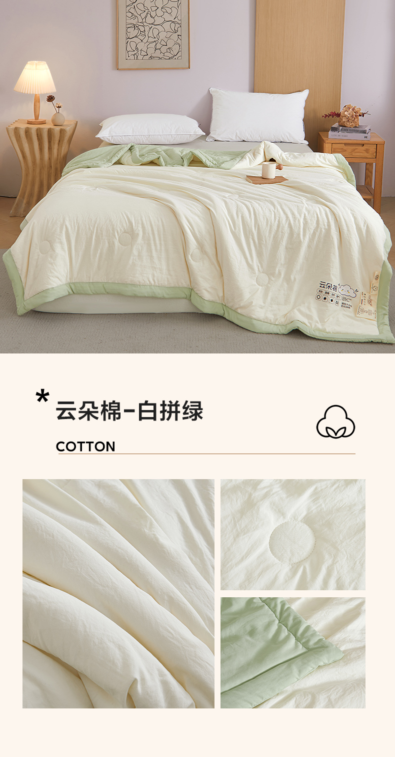 商品名称:样样红被业 2026新款水洗棉100%纯棉花夏被 云朵棉-白拼绿