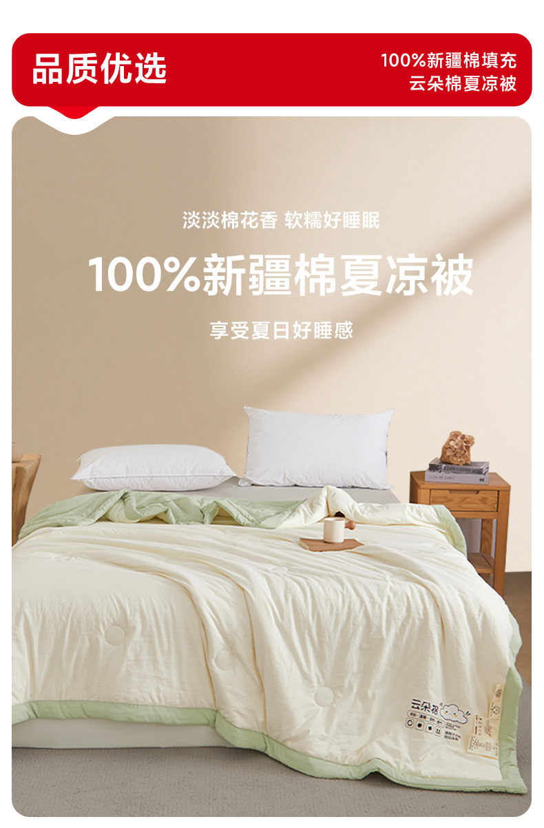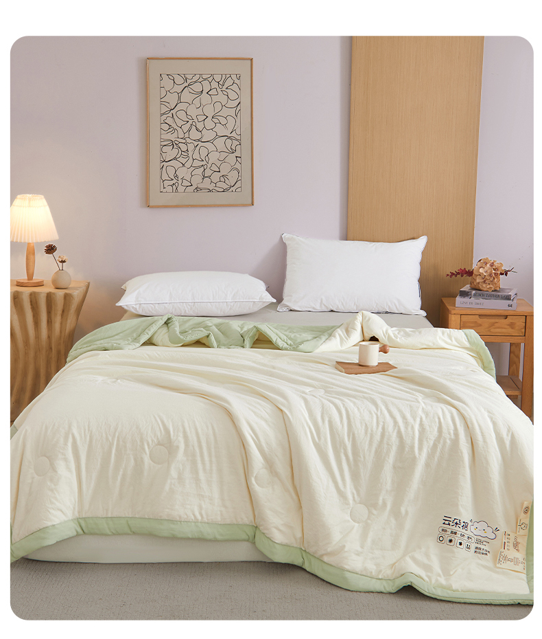 样样红被业 2026新款水洗棉100%纯棉花夏被 云朵棉-白拼绿