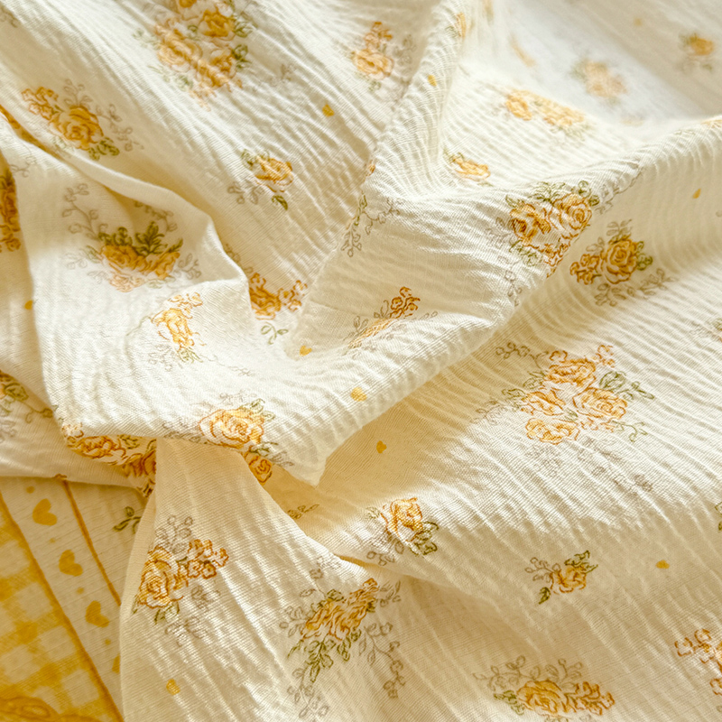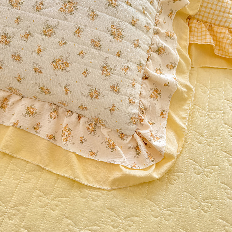 商品名称:2026春夏新款ins风小清新AB版法式云朵棉木棉床盖款四件套 奶酪芝士