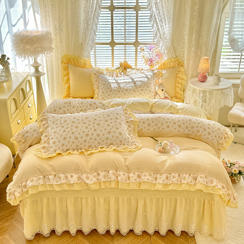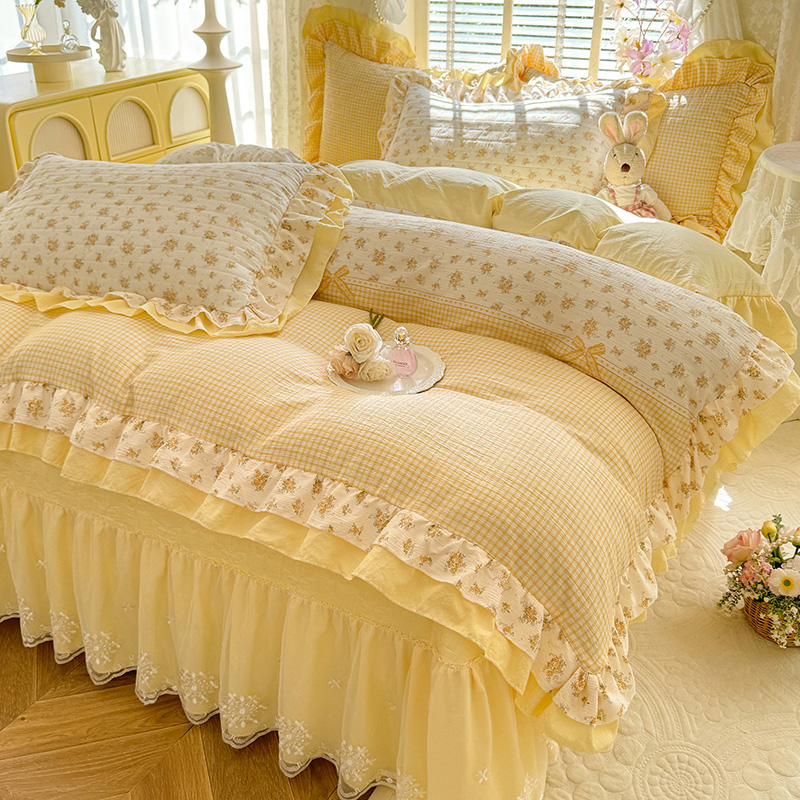 (总)苏米娜2026春夏新品韩版公主风小清新水洗棉床盖四件套针织棉双层纱纯棉棉麻全棉公主风床盖款四件套,幸运花-樱花粉 , 幸运花-梦幻蓝 ,幸运花-香芋紫, 幸运花-柠檬黄,幸运花-奶油白,幸运花-薄荷绿