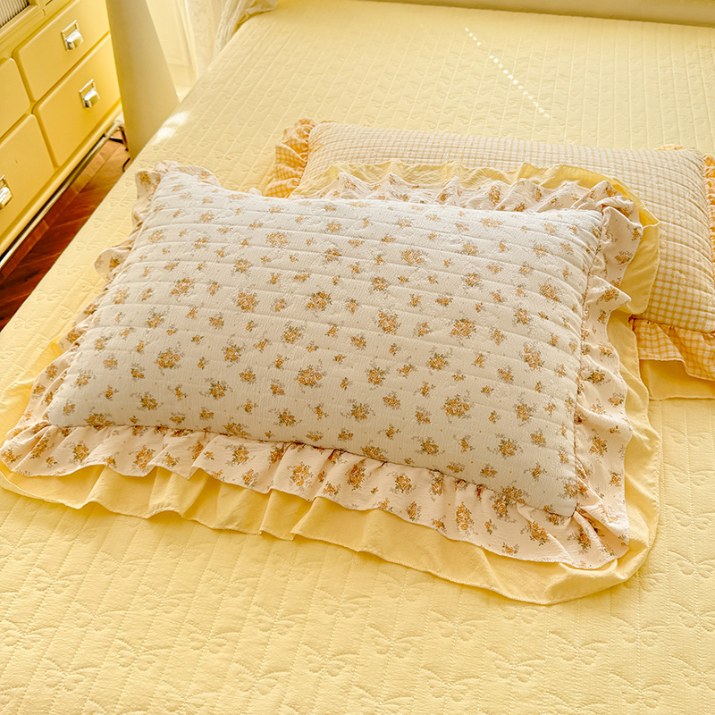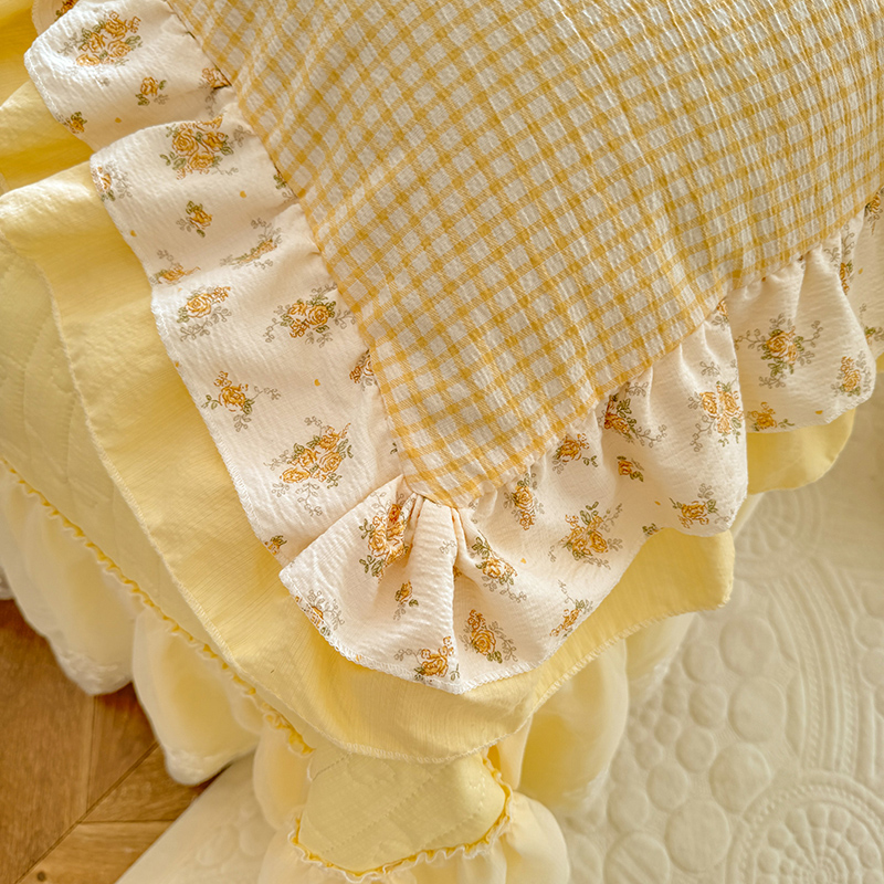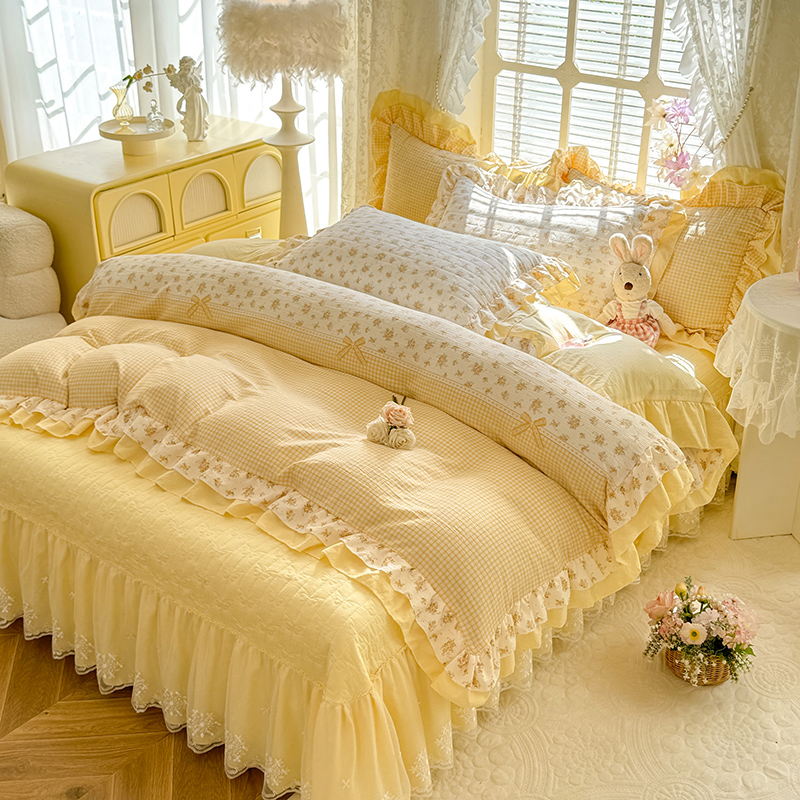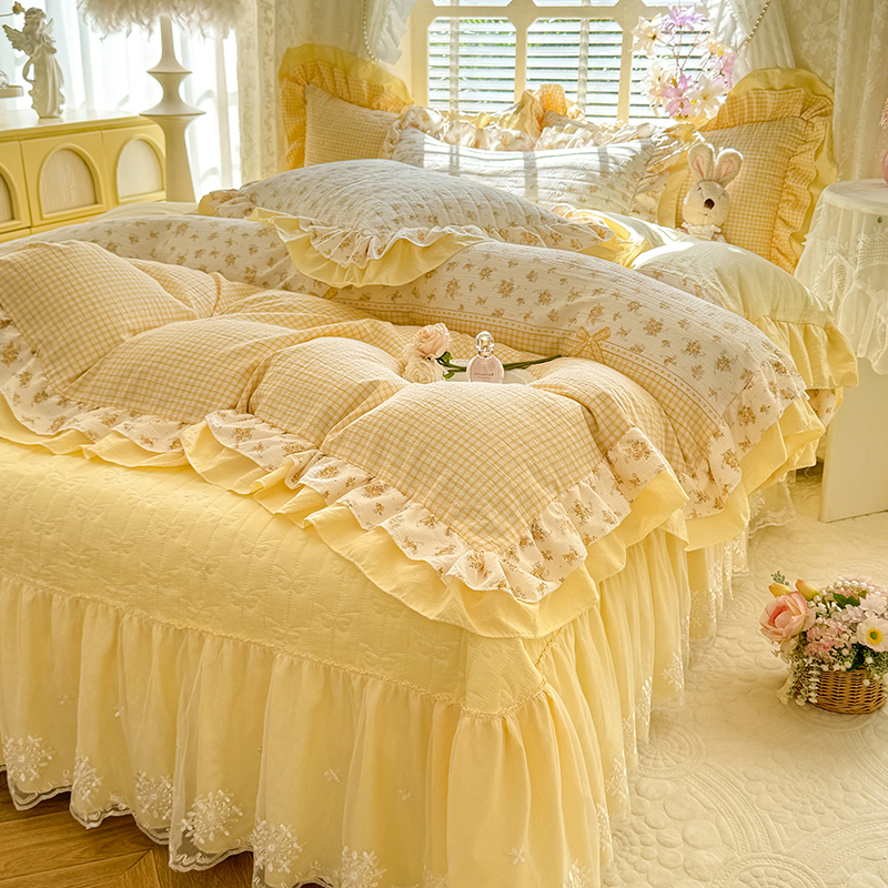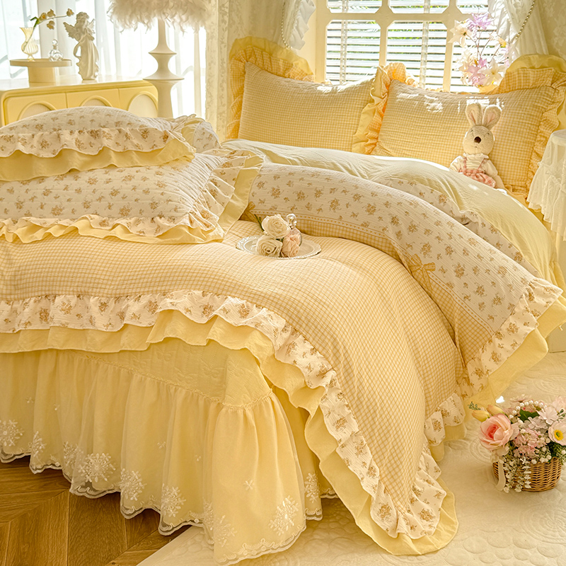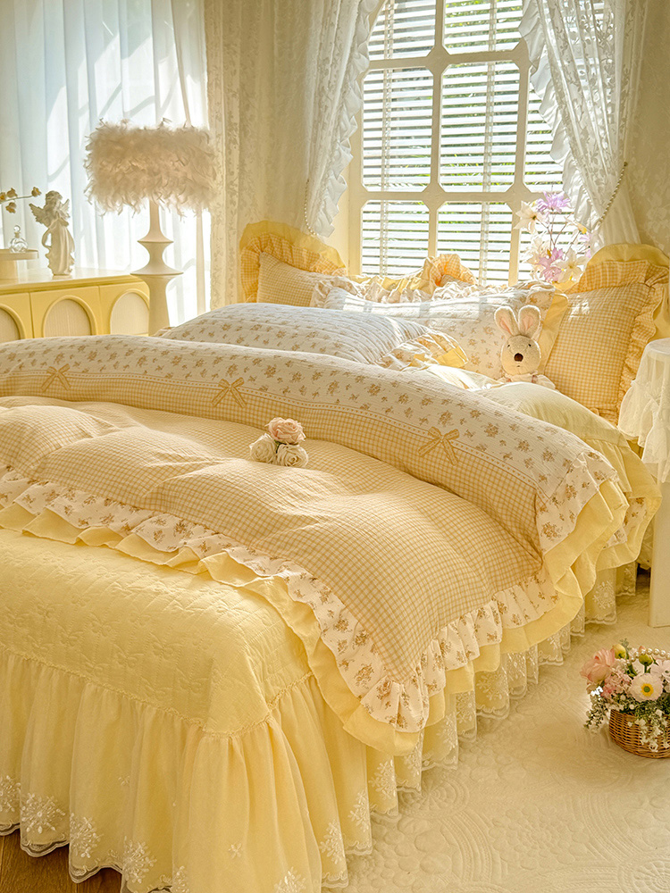 2026春夏新款ins风小清新AB版法式云朵棉木棉床盖款四件套 奶酪芝士