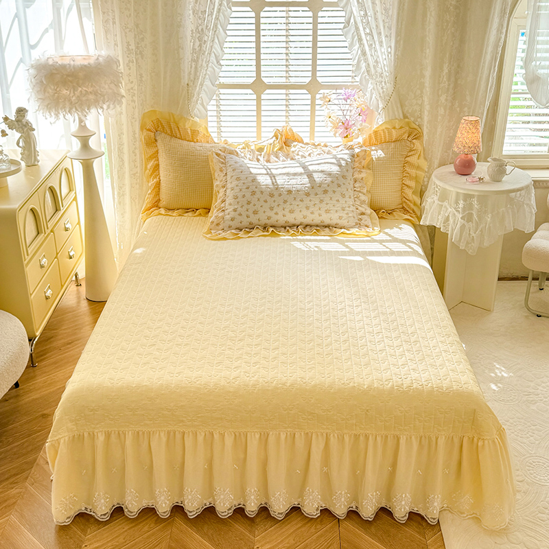 苏米娜家纺2026春夏新品韩版甜美公主风超柔水洗棉床盖四件套刺绣针织棉双层纱纯棉棉麻全棉少女心夹棉床裙款夏被款床盖四件套,幻蝶-梦幻紫 ,幻蝶—奶油白 ,幻蝶-嫩黄, 幻蝶-嫩芽绿 ,幻蝶-婴儿蓝, 幻蝶-樱花粉