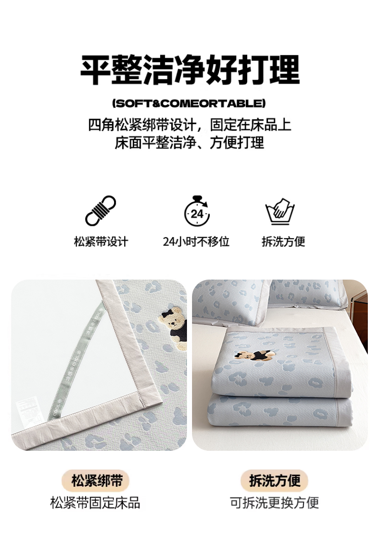 当前位置: 91家纺网 > 商品网购 > 床上用品 > 凉席 > 凉席套件 > 孩子王家纺 2026春夏新款A类母婴级ins清新冰豆豆小熊刺绣凉感值过0.21夏季冰丝席凉席 小熊豹豹-浅粉 床笠款