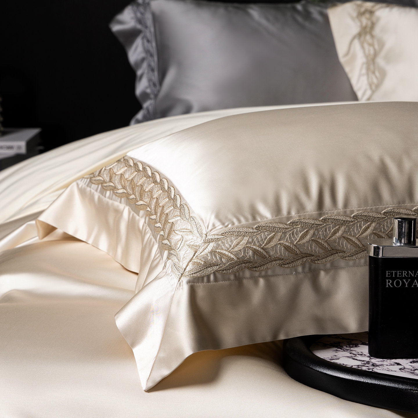 (总)馨蕊家居 2026新款100S全棉纯棉高定高精密刺绣四件套-赫本【淘宝 / 劵后控价:不低于 418/438】,高精密赫本-高级灰,高精密赫本-奶咖,高精密赫本-蔷薇粉