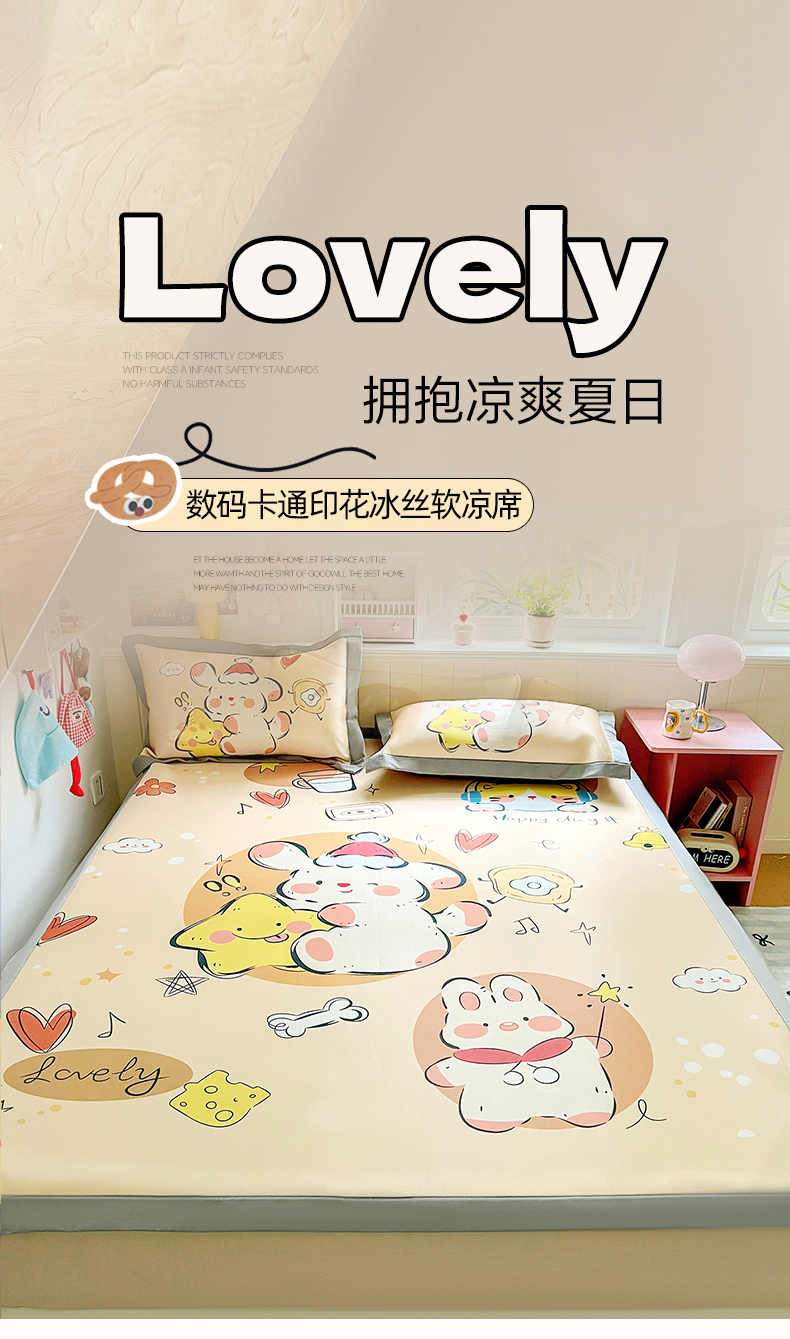 商品名称:KT猫直营店 2026新款数码卡通印花凉感冰丝软凉席席子 小确幸-席