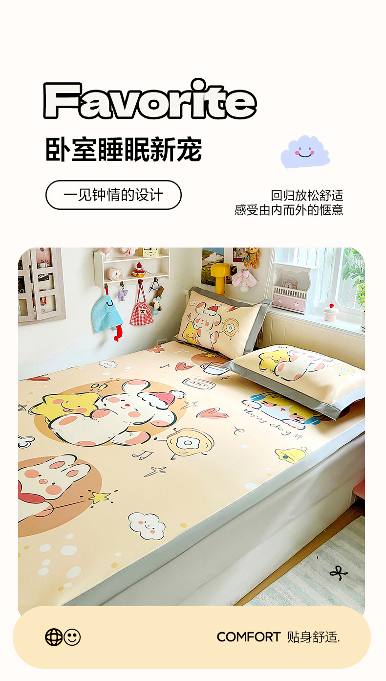 (总)KT猫直营店 2026新款数码卡通印花凉感冰丝软凉席席子,波点熊-席,登月叮当黄-席,登月叮当蓝-席,飞行汪-席,懒懒熊-席,晚安小星-席,小确幸-席,星星人派对-席,星芽芽-席,星仔面包铺-席,眼镜狗-席