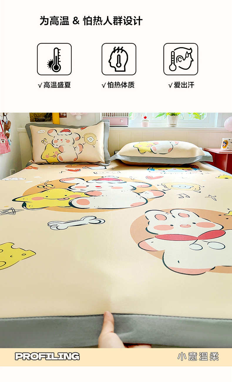 KT猫直营店 2026新款数码卡通印花凉感冰丝软凉席席子 小确幸-席