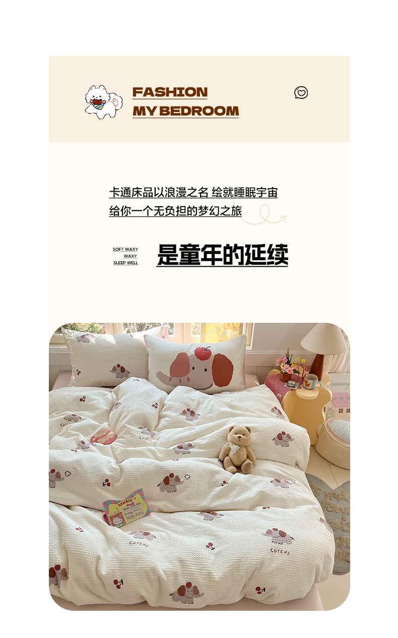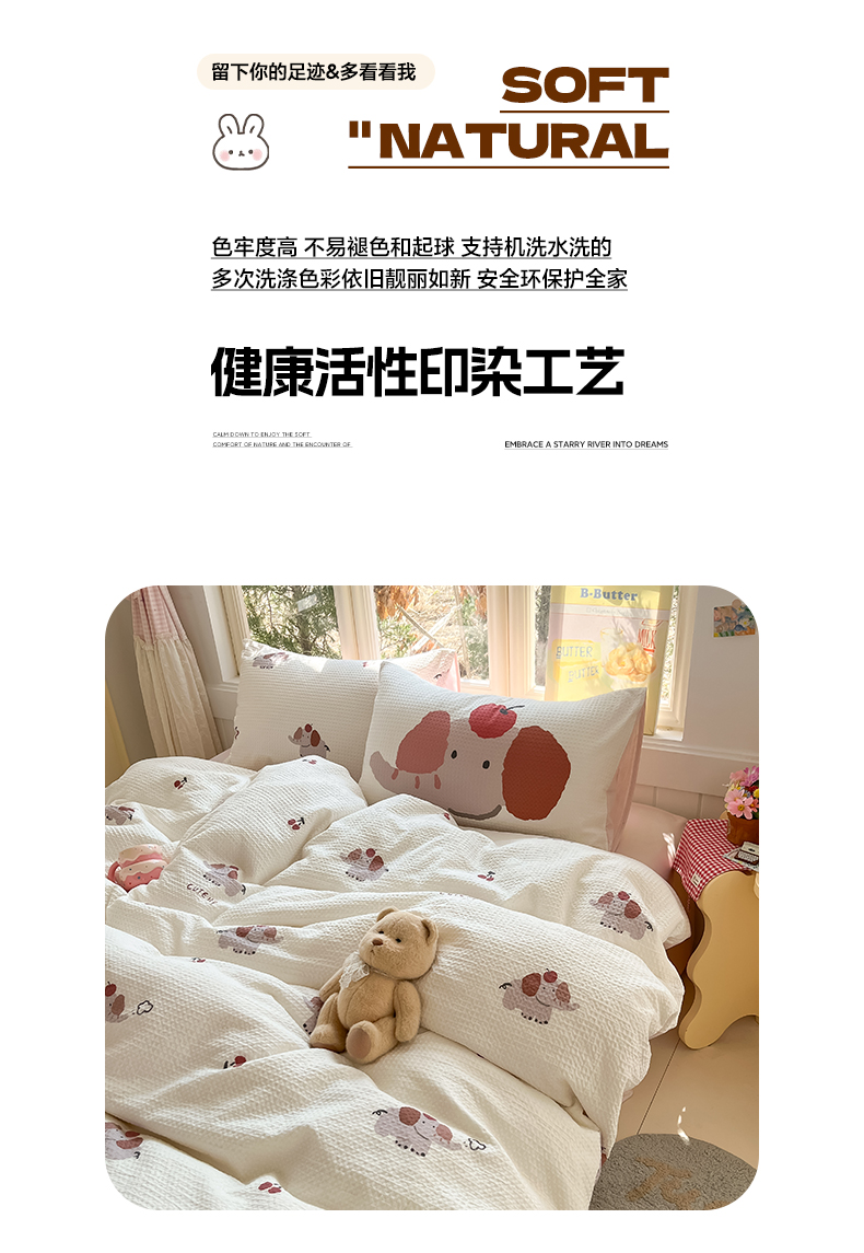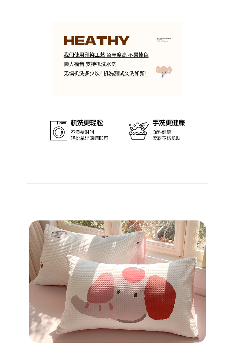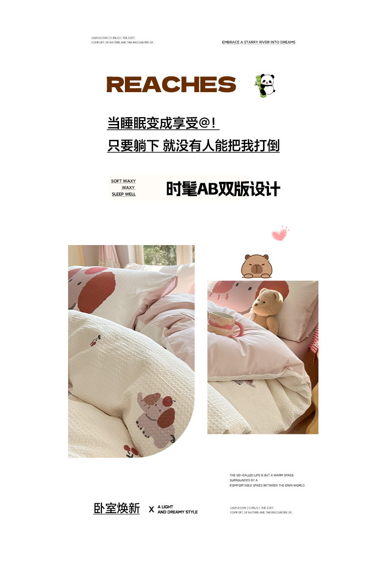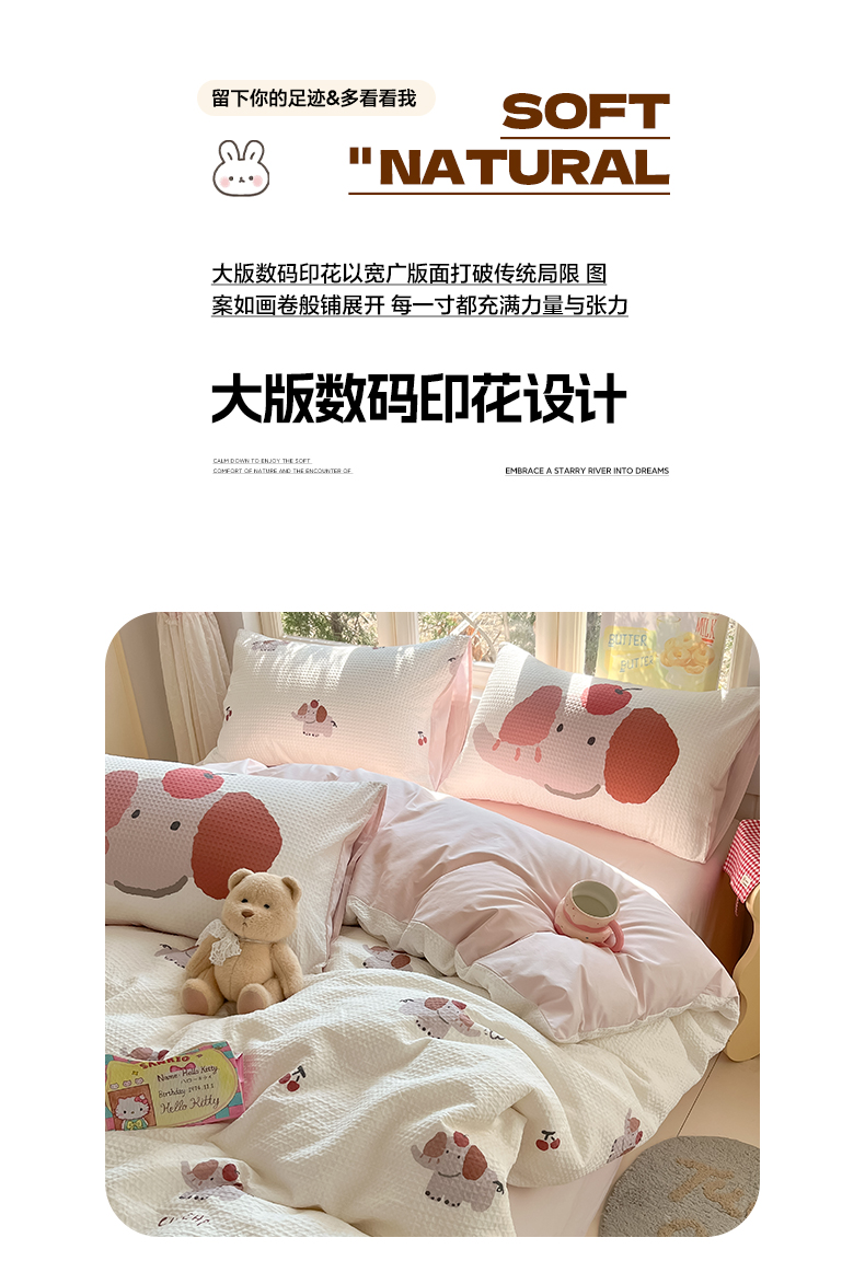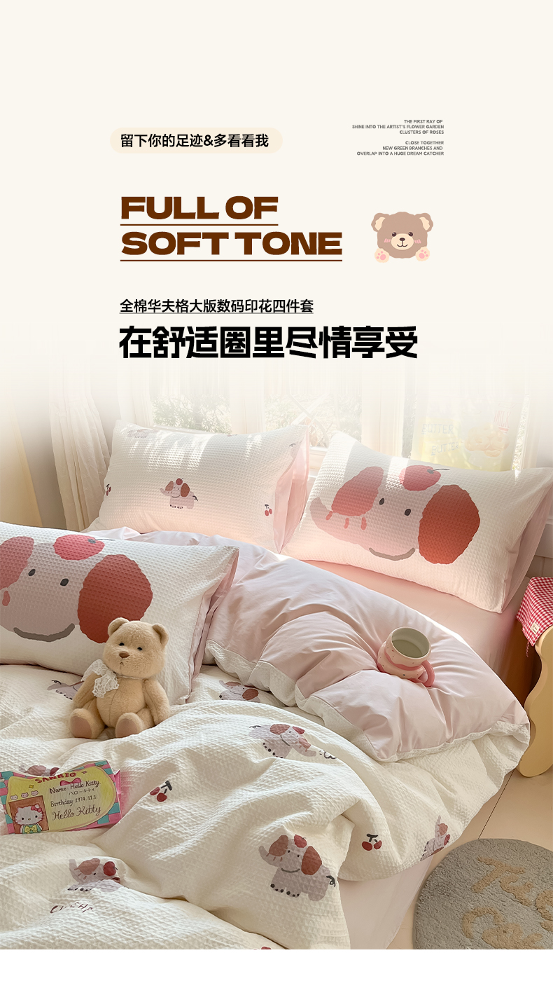 当前位置: 91家纺网 > 商品网购 > 床品套件 > 四件套 > 全棉普通四件套 > 如一 2026新款全棉纯棉华夫格大版数码印花四件套 苹果象