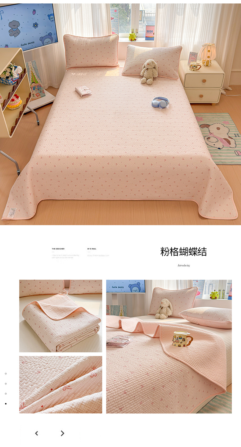 (总)雅萱家纺 2026新款双面全棉砂洗印花床盖三件套,粉格蝴蝶结,粉色蔷薇,格子樱桃,海盐小熊,可爱猫,可爱星人,绿格蝴蝶结,魔法星人,墨染秋菊,奶咖日记,奶条萌熊,甜桔,小狗点点,紫蔷薇花园,紫色小花