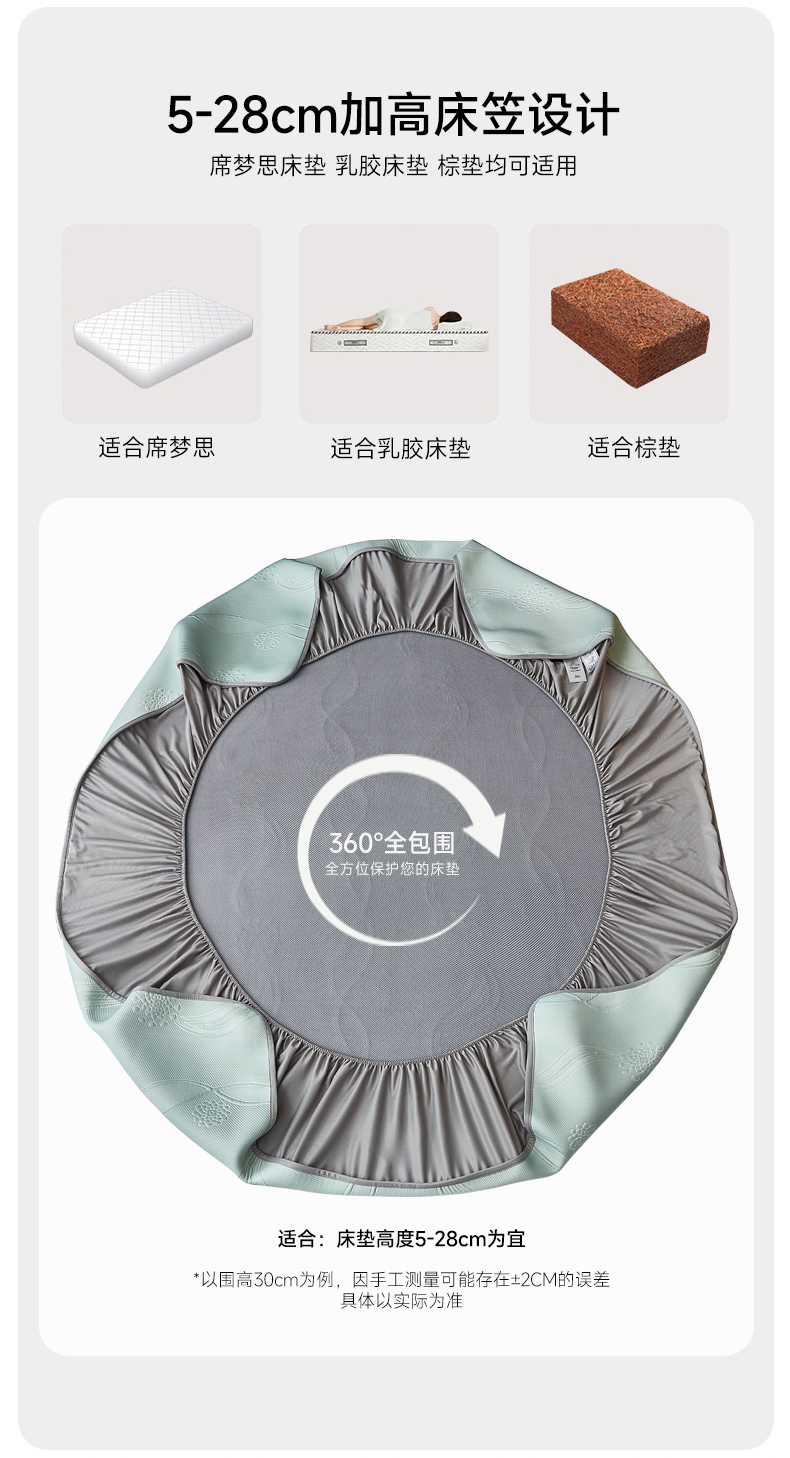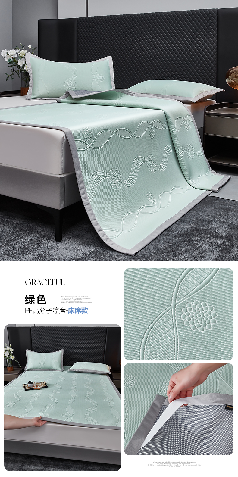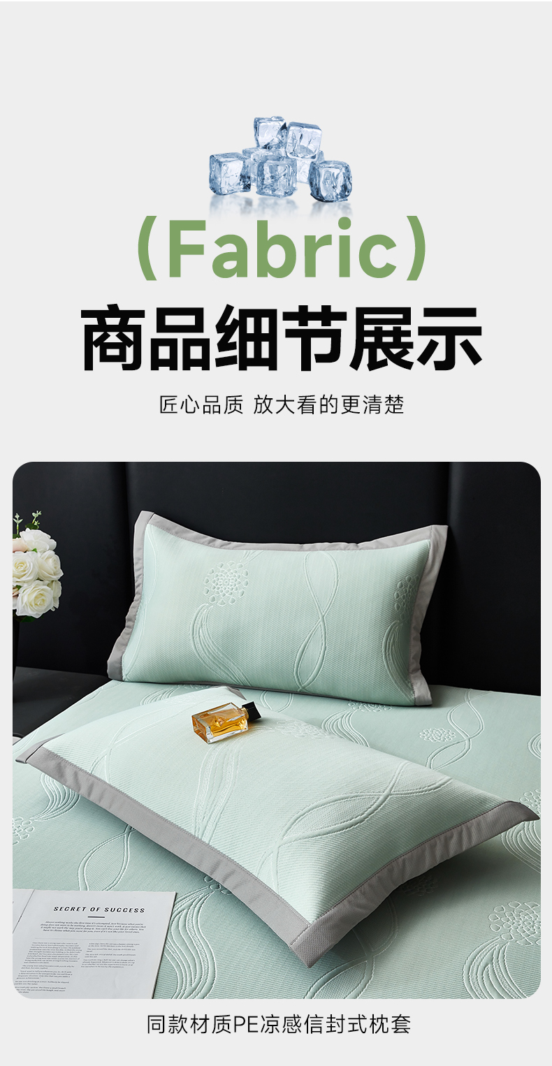 商品名称:库里梦家纺 2026新款轻奢高克重复合PE高分子凉席床笠三件套-芳菲 芳菲-绿色床席款