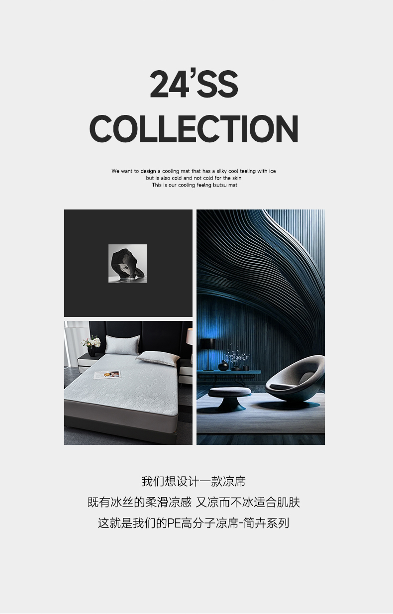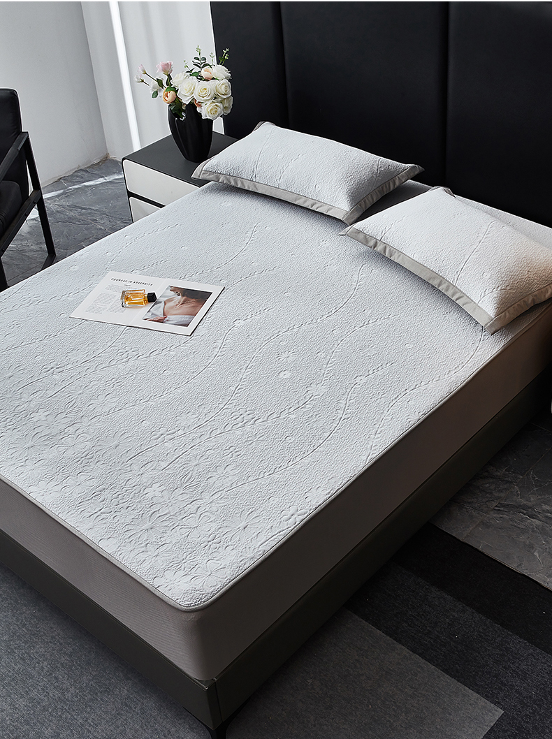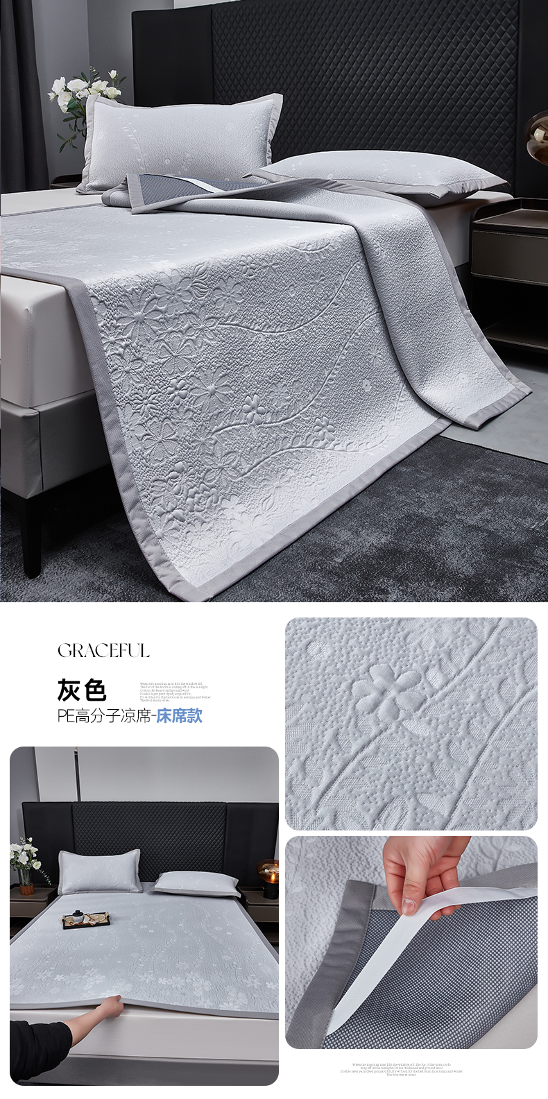 商品名称:库里梦家纺 2026新款轻奢高克重复合PE高分子凉席床笠三件套-简卉 简卉-灰色床席款