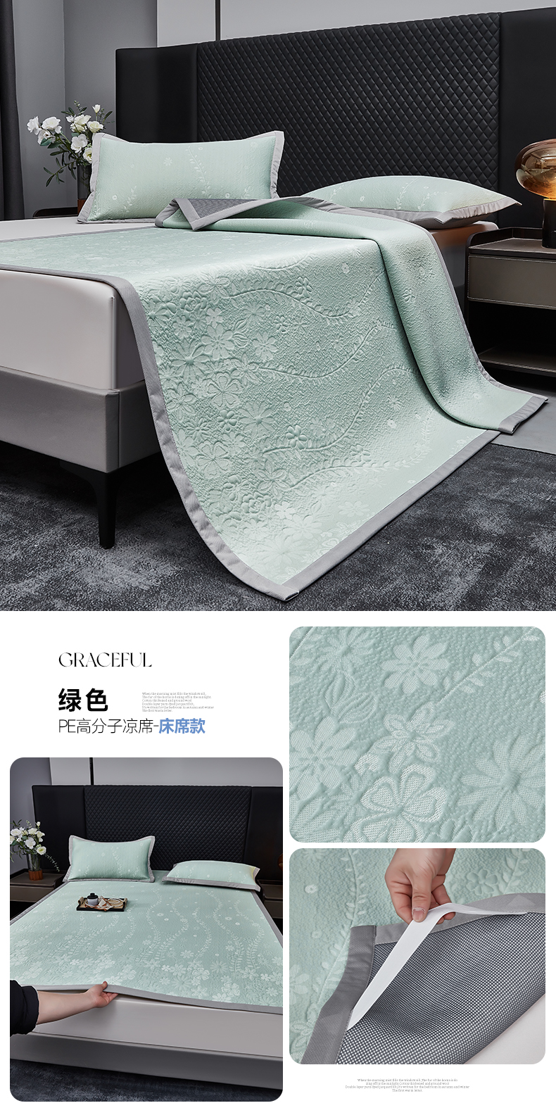 (总)库里梦家纺 2026新款轻奢高克重复合PE高分子凉席床笠三件套-芳菲,芳菲-粉色床席款,芳菲-灰色床席款,芳菲-蓝色床席款,芳菲-绿色床席款,芳菲-粉色床笠款,芳菲-灰色床笠款,芳菲-蓝色床笠款,芳菲-绿色床笠款