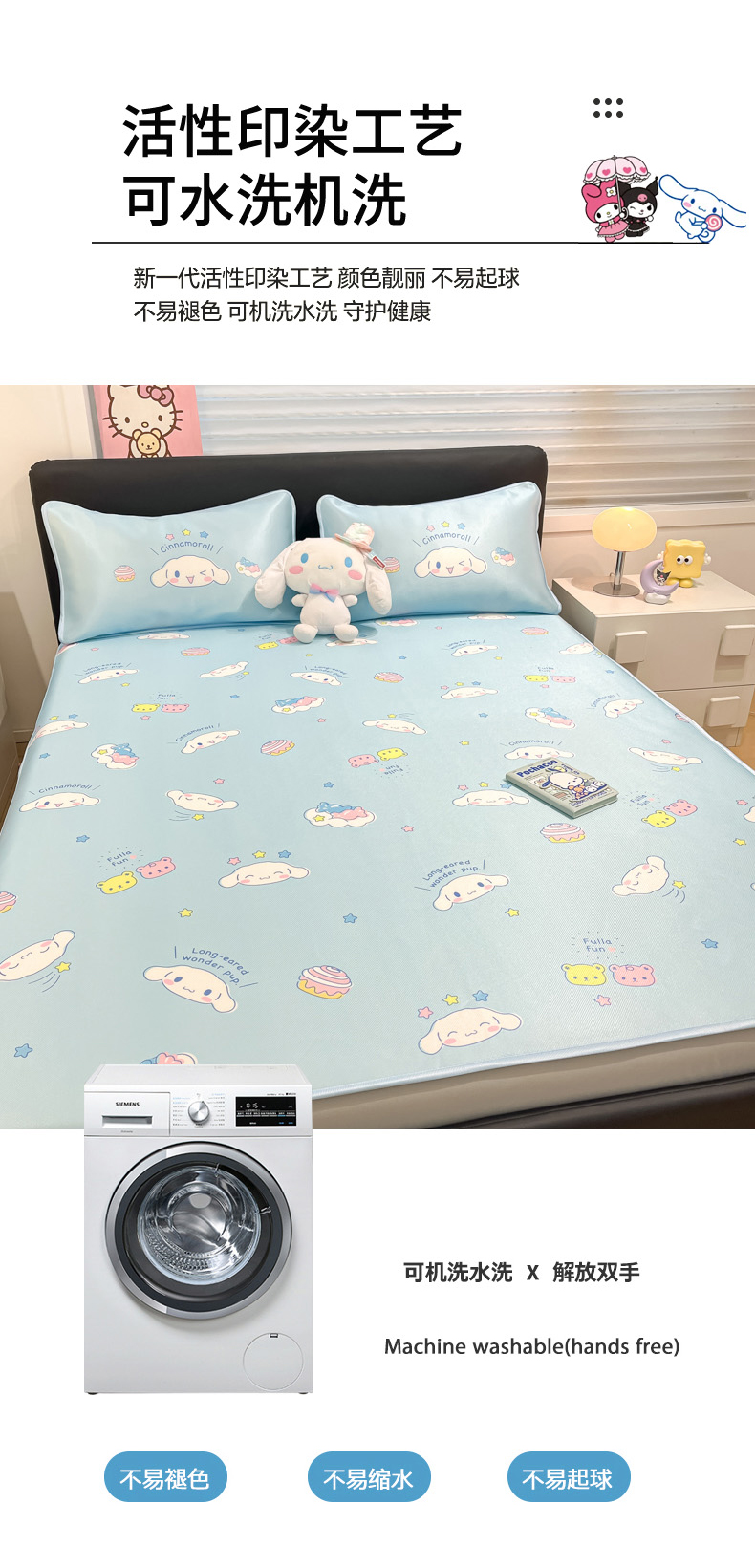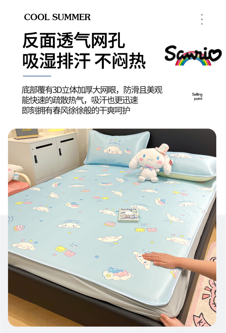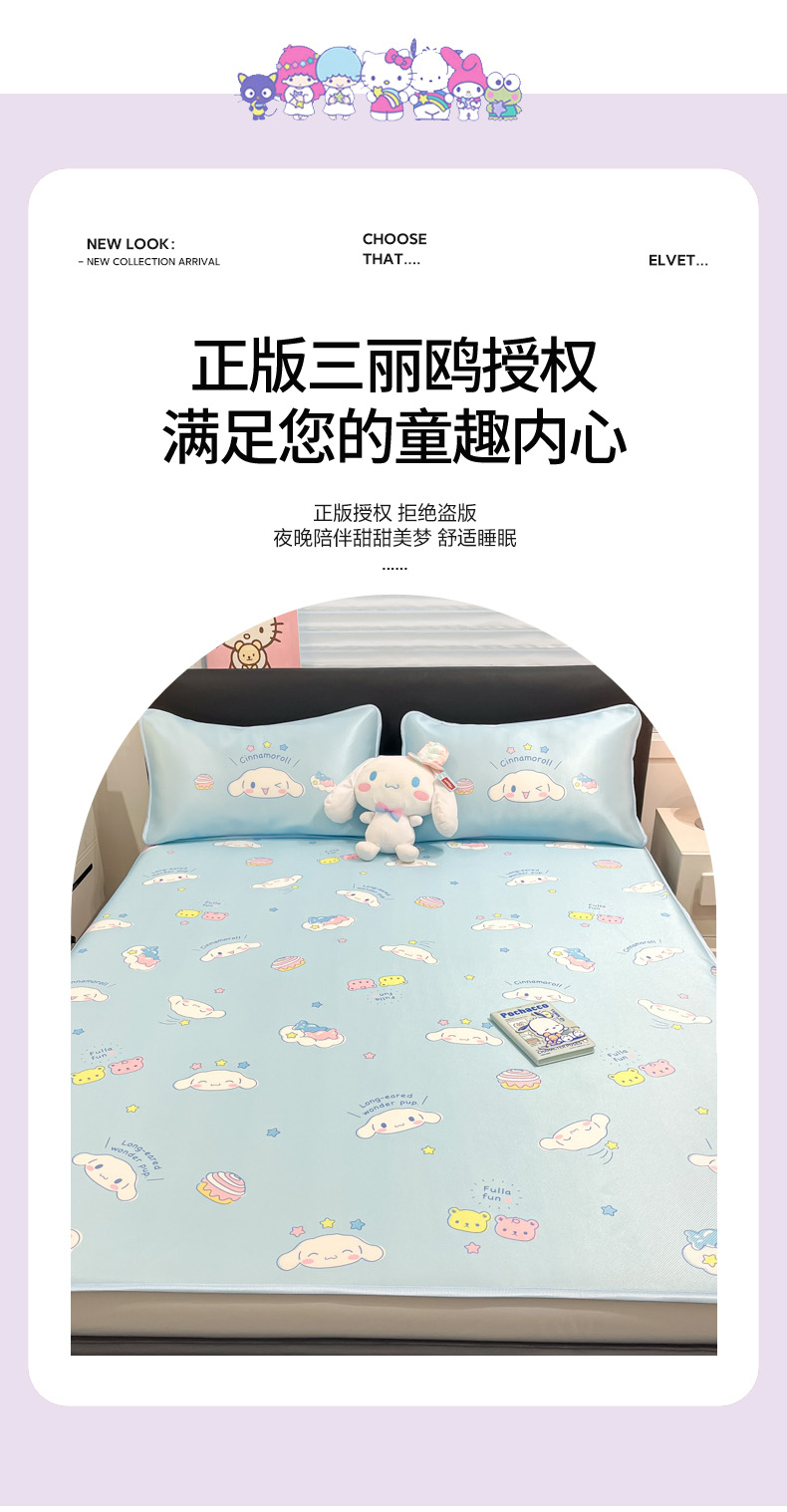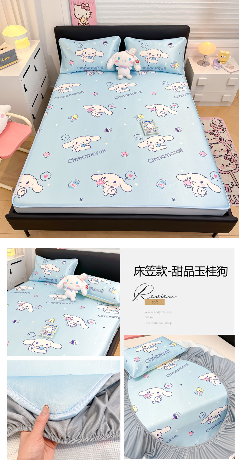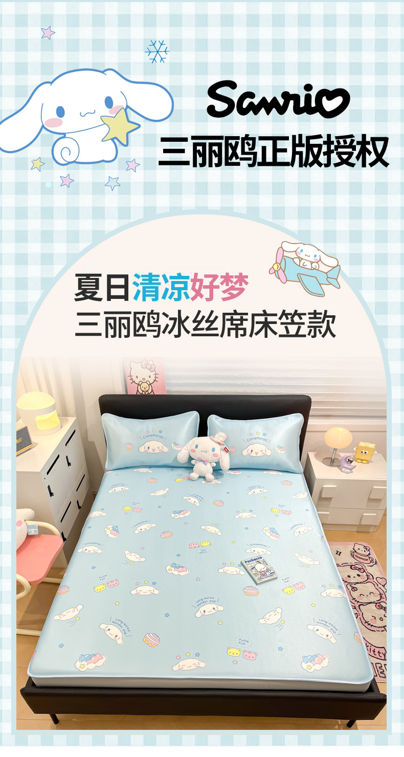 当前位置: 91家纺网 > 商品网购 > 床上用品 > 凉席 > 凉席套件 > 暮思家居 2026新款三丽鸥正版授权数码印花A类可机洗1200D冰丝凉席三件套床笠款系列 床笠款-云朵大耳狗