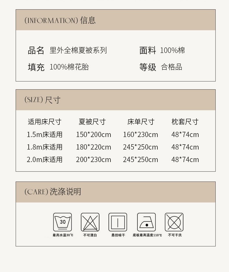 • 适用季节: 空调被/夏凉被